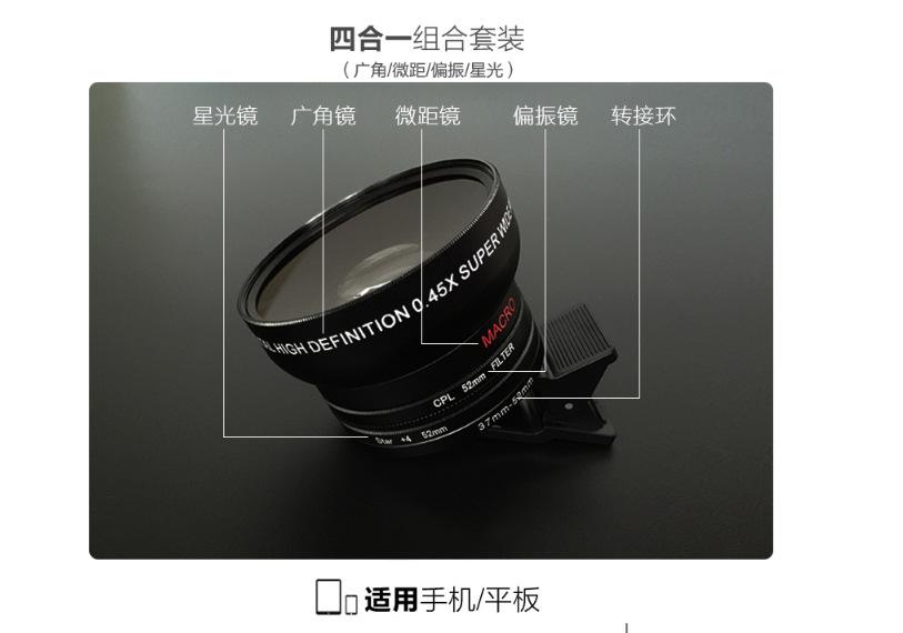 Se requiere un anillo adaptador (37mm-52mm) para el uso con teléfono móvil. Este objetivo se puede usar con filtros.