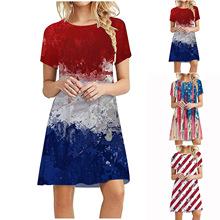 Vestido con estampado de bandera del Día de la Independencia de Estados Unidos, cuello redondo, manga corta, falda acampanada, nuevo vestido del Día de la Independencia de Amazon
