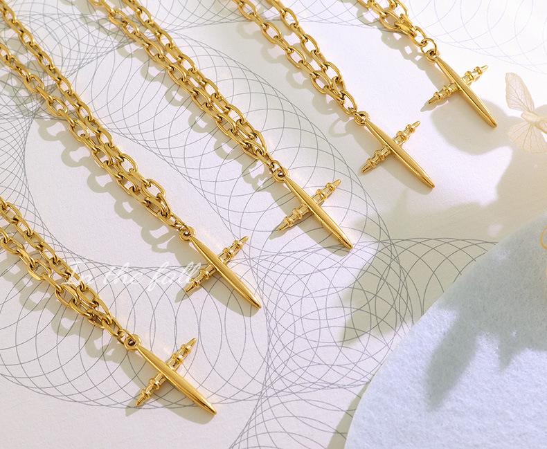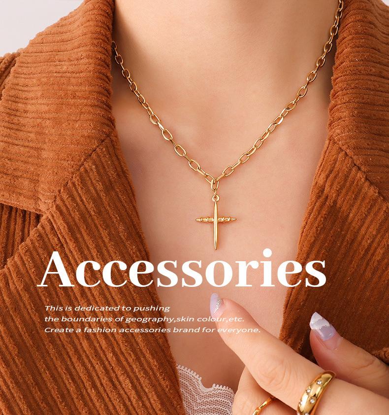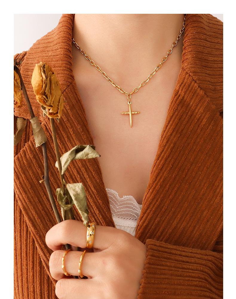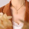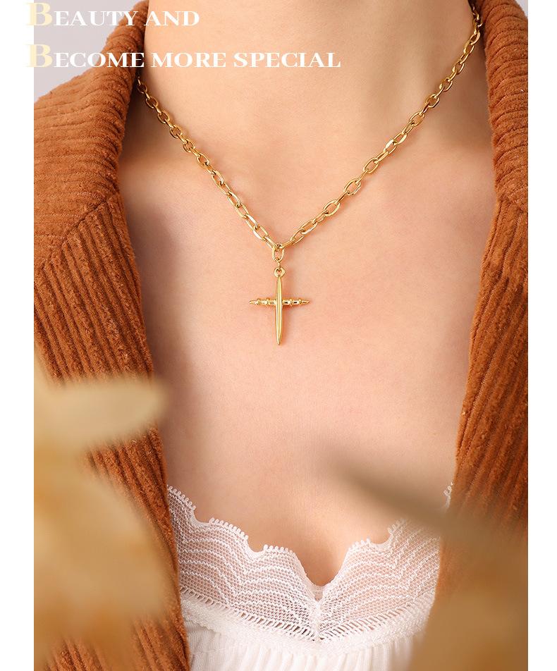 Collar con colgante de cruz personalizado de moda coreana para mujer, chapado en acero de titanio y oro de 18 quilates, collar de clavícula P776