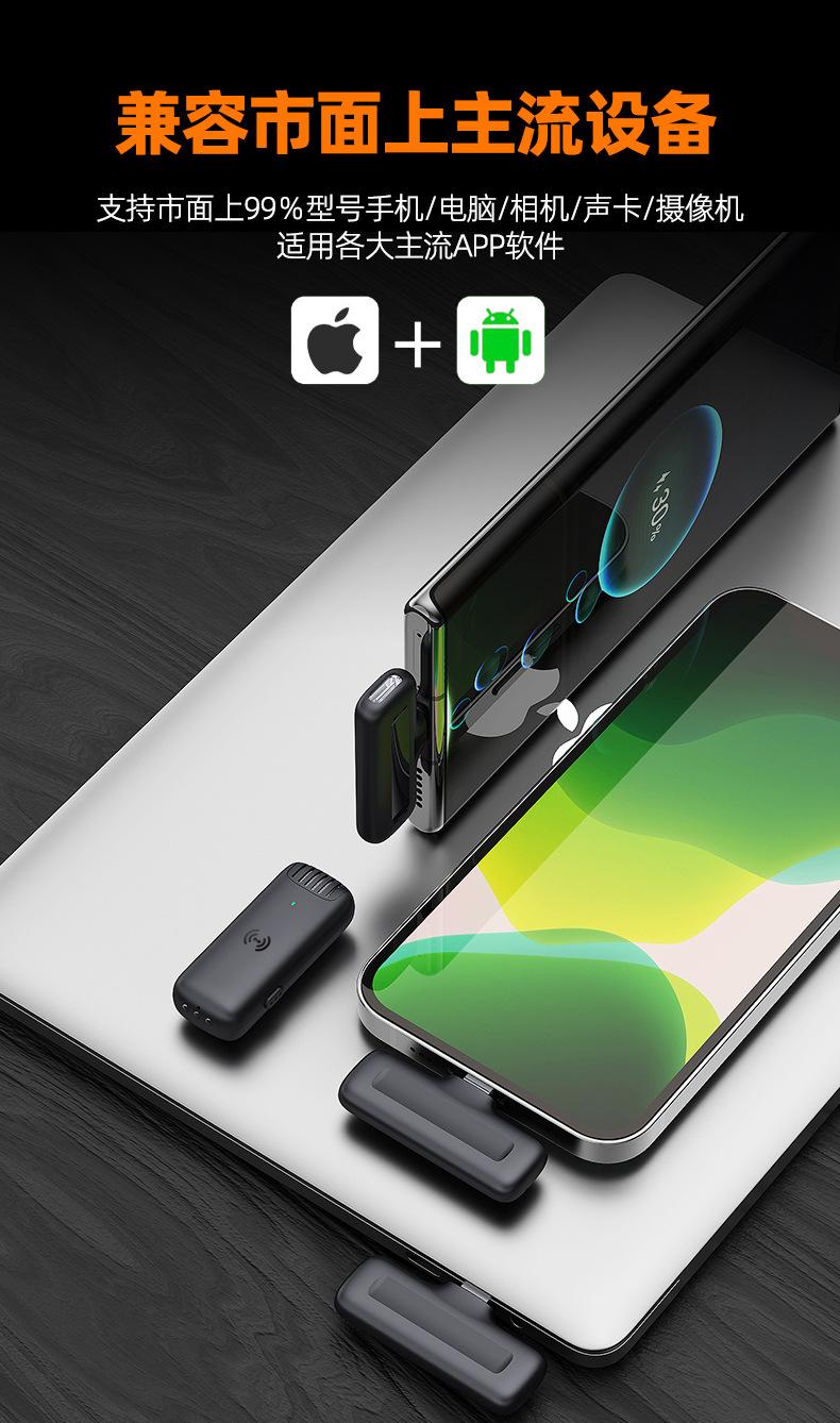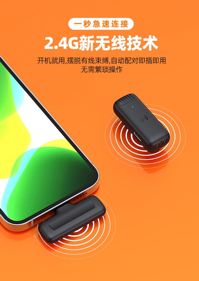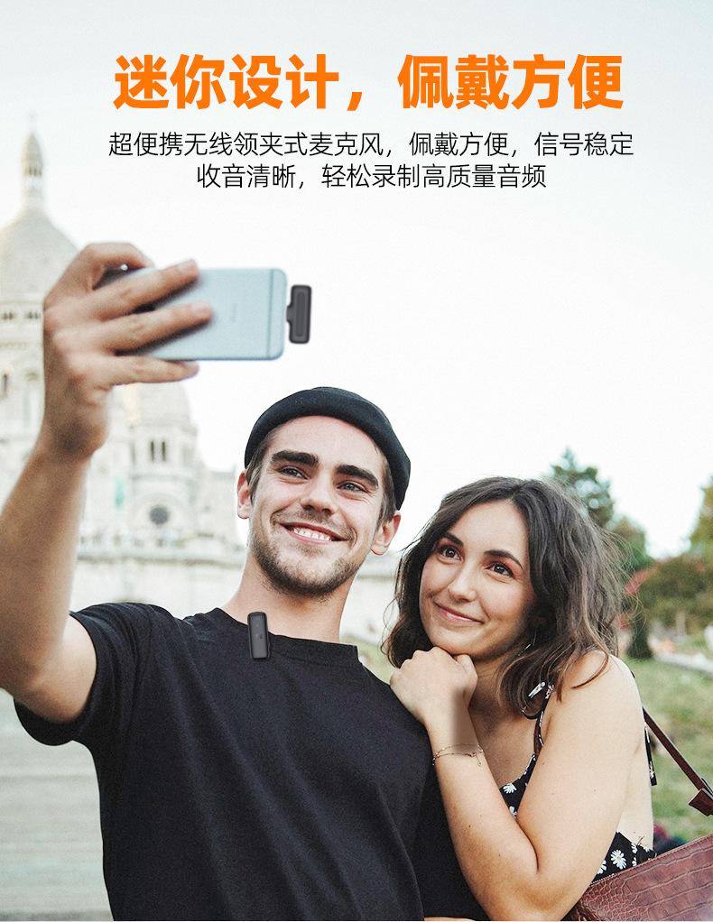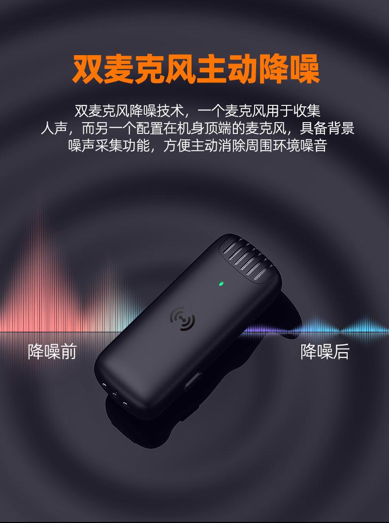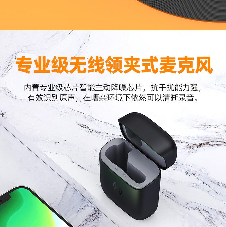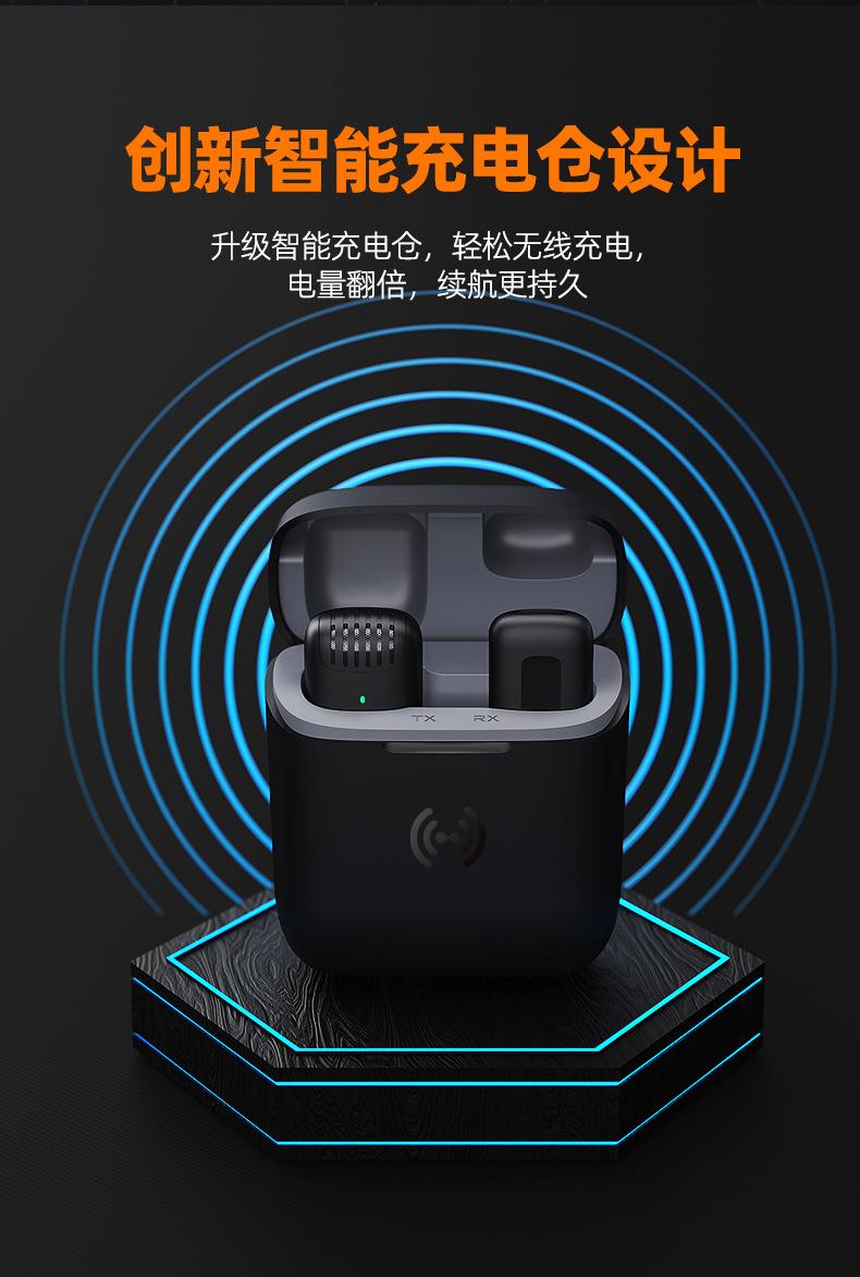 Micrófono inalámbrico con clip para collar J11 de larga duración con compartimento de carga, mini micrófono en vivo, reducción de ruido inteligente transparente