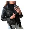 Chaqueta de cuero de motocicleta transfronteriza europea y americana de primavera y otoño de 2023 para mujer, chaqueta de cuero corta y ajustada para mujer.