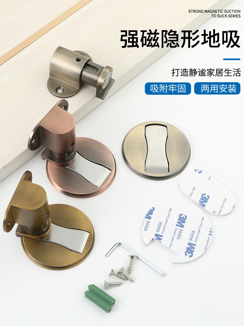 Puerta de hotel con succión de piso ajustable sin perforaciones, fuerte succión magnética para puerta, baño con succión magnética, anticolisión, invisible, de aleación de zinc.