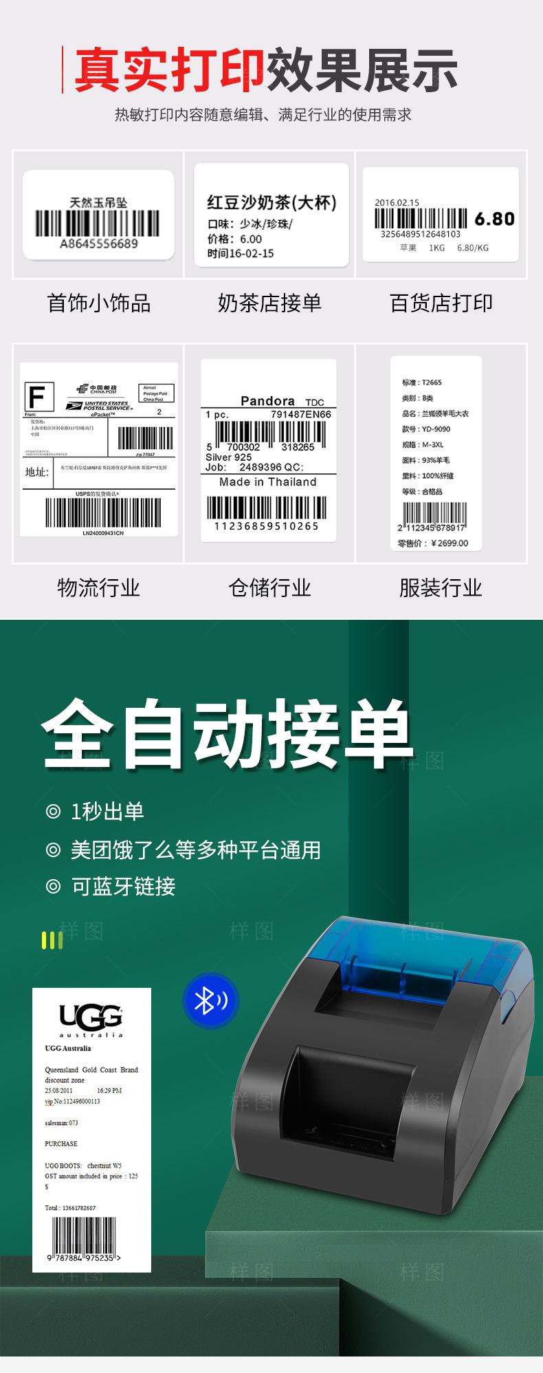 Xunchen Jingdong Impresora para Comida para Llevar Totalmente Automática Bluetooth Pedido por Voz Cajero Recibo Pequeño Meituan Baidu Ele.Me