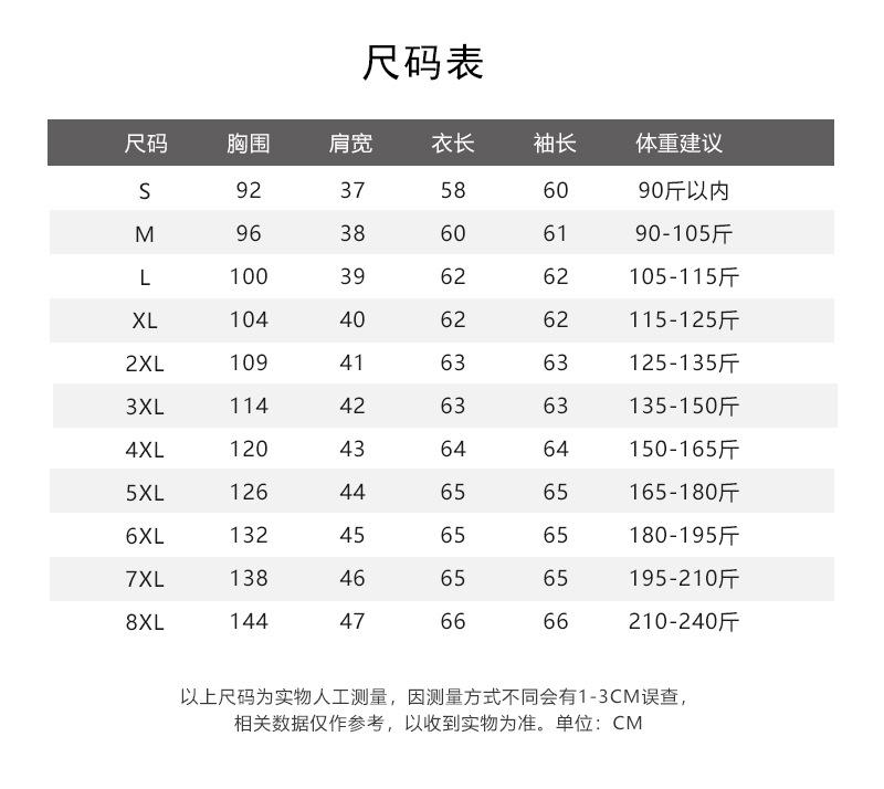 S, M, L, XL, 2XL, 3XL, 4XL, 5XL, 6XL, 7XL, 8XL