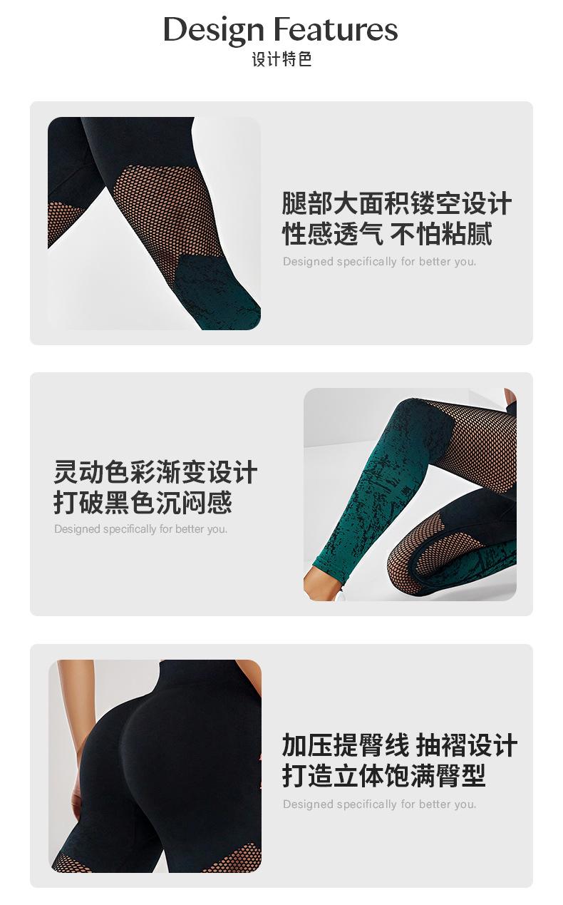 Pantalones deportivos de fitness de cintura alta con diseño de malla degradada sin costuras, transpirables, de estilo europeo y americano, para yoga, 100%