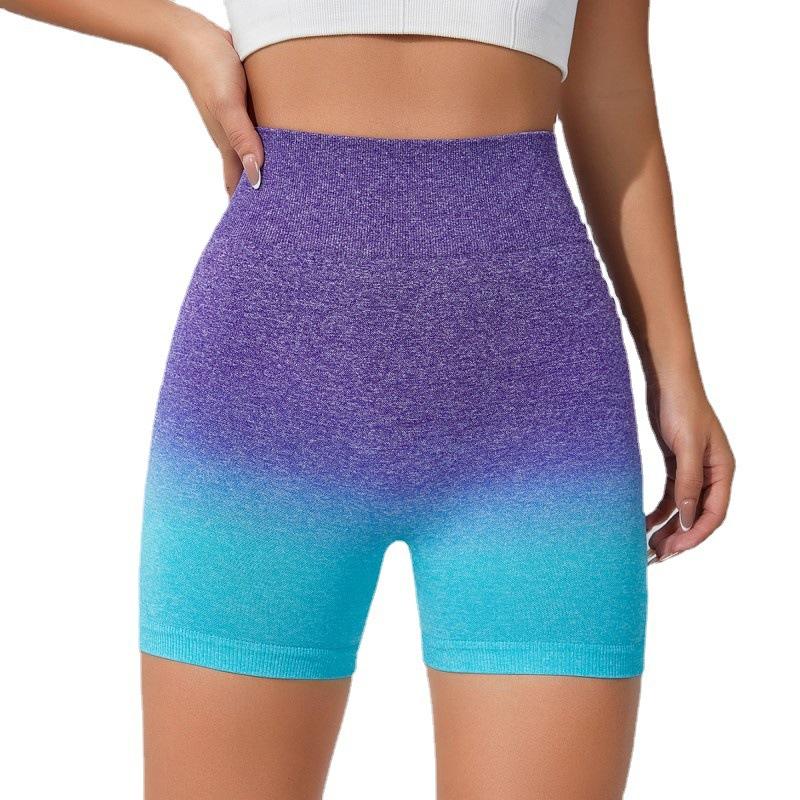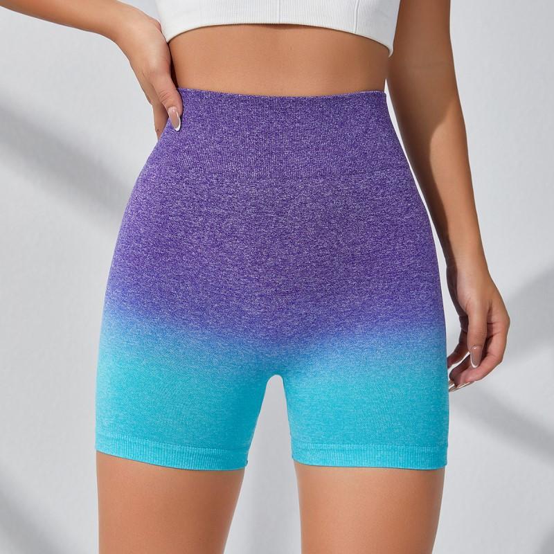 Shorts de Fitness Degradados Transfronterizos Sin Vergüenza Transpirables Chicas Hot Entrenando Hierro Laminado Mallas para Correr Yoga Shorts Verano
