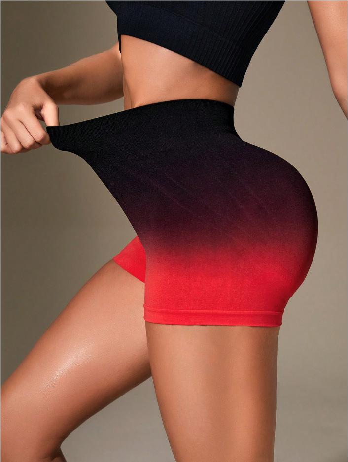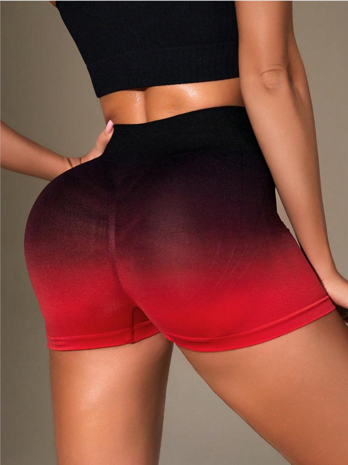 Pantalones de yoga con efecto lifting de cadera con gradiente europeo y americano para mujer, pantalones cortos deportivos de yoga con cintura alta y contracción abdominal Peach Hip