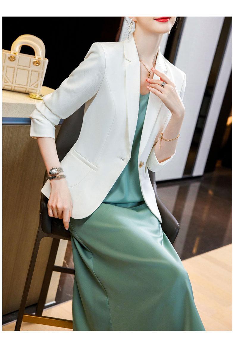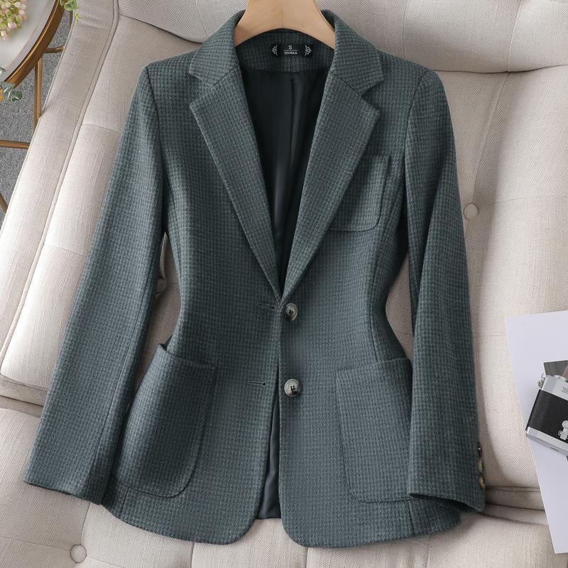 Chaqueta de traje verde transfronteriza para mujer, primavera y otoño, nueva diosa, estilo coreano, informal, elegante, de un solo pecho, traje pequeño