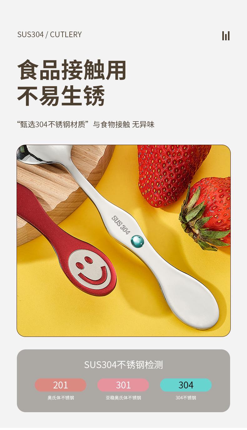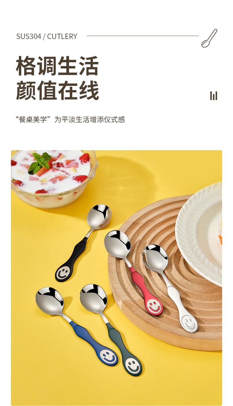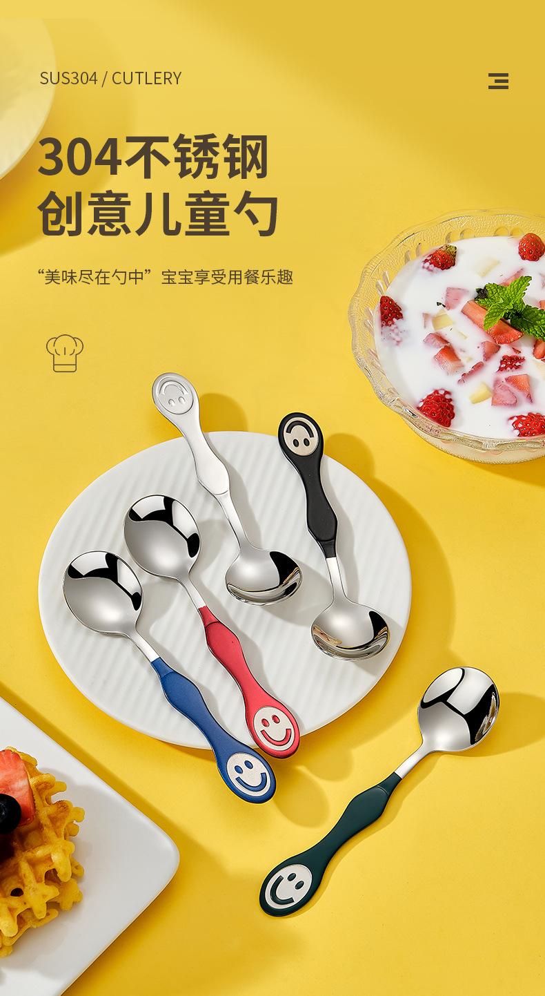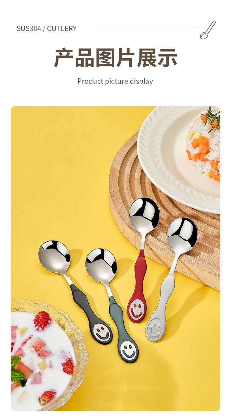 Cuchara creativa con cara sonriente para niños, cuchara de acero inoxidable 304, cuchara para comer para bebés, cuchara de entrenamiento para suplementos alimenticios para bebés