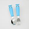Cuchara de plástico y acero para alimentos de bebé, cuchara para alimentos complementarios para bebés, cuchara para niños con dibujos animados, juego de vajilla con tenedor de acero inoxidable 304
