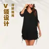 2025 Ropa Nueva Europea y Americana de Mujer Amazon Vestido de Playa con Cuello en V Plisado y Cordón Venta al por Mayor