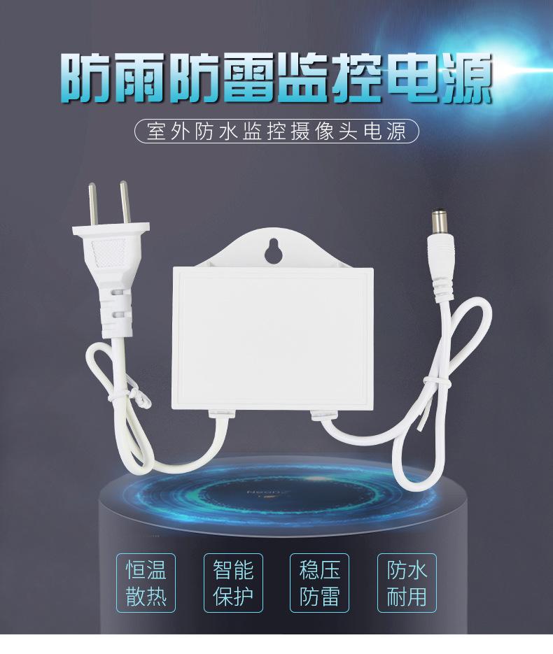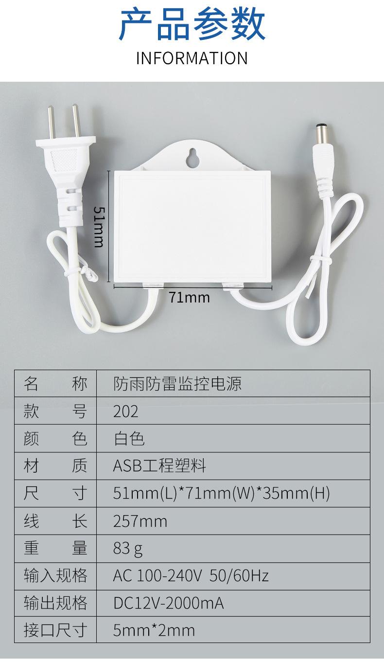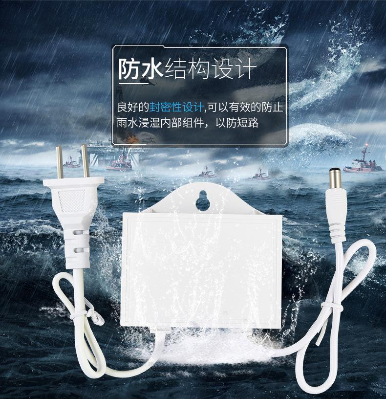 Adaptador de Corriente 12V2A Blanco Monitoreo de Seguridad Fuente de Alimentación Impermeable de Doble Cable Tira de Luces LED/12V2A202