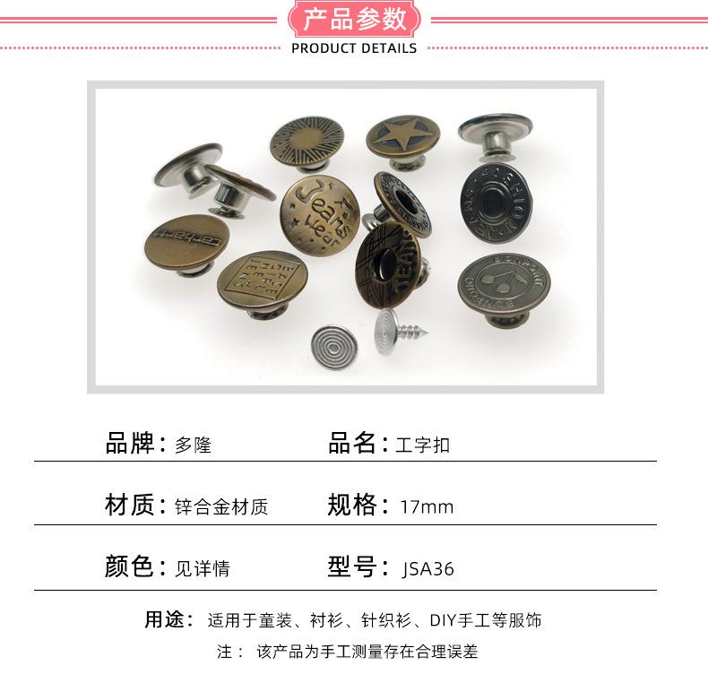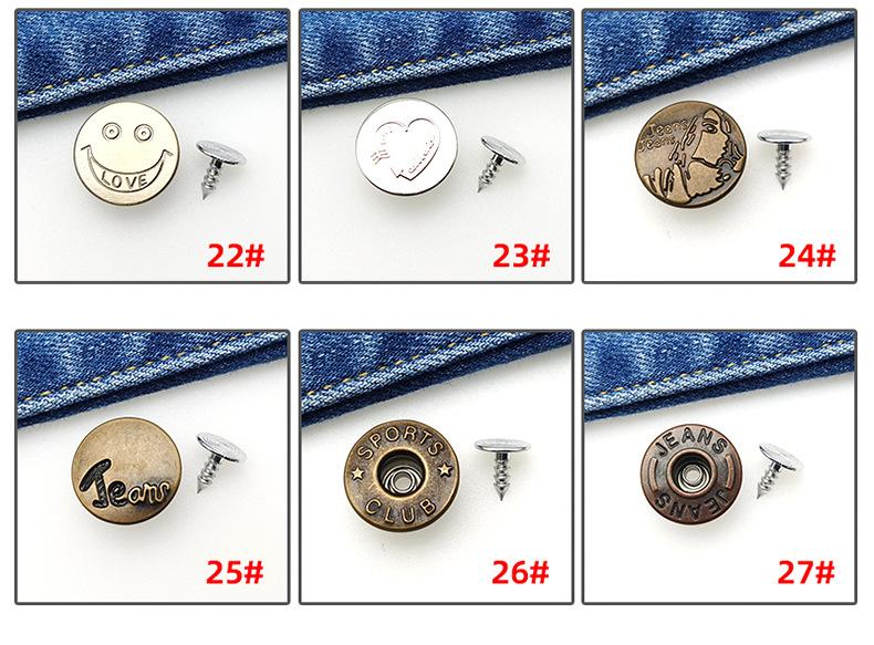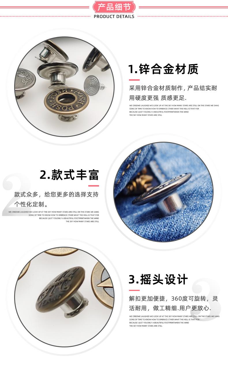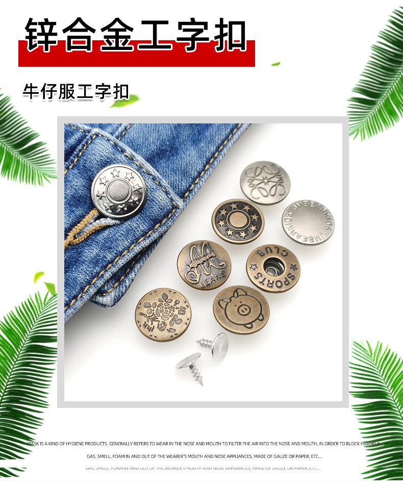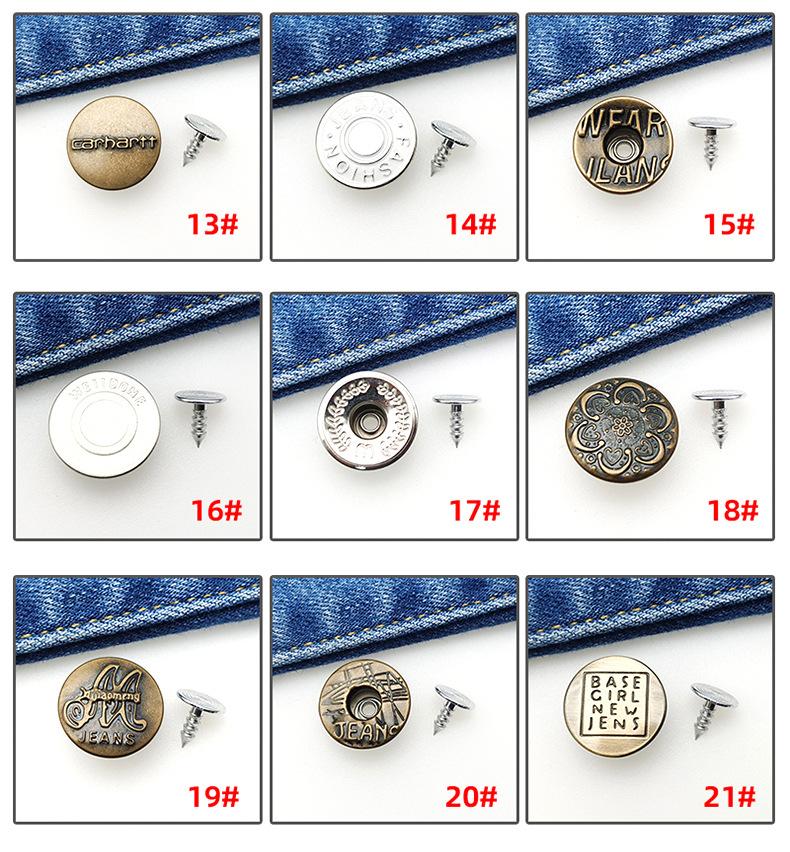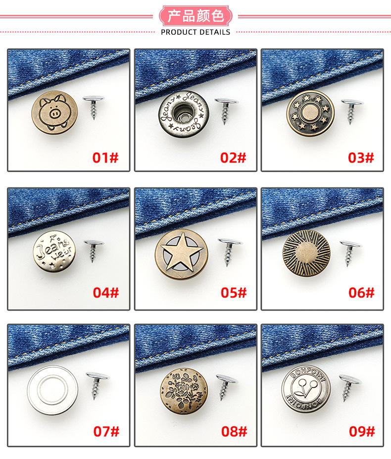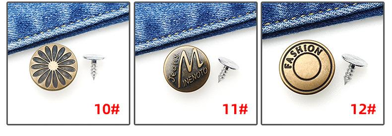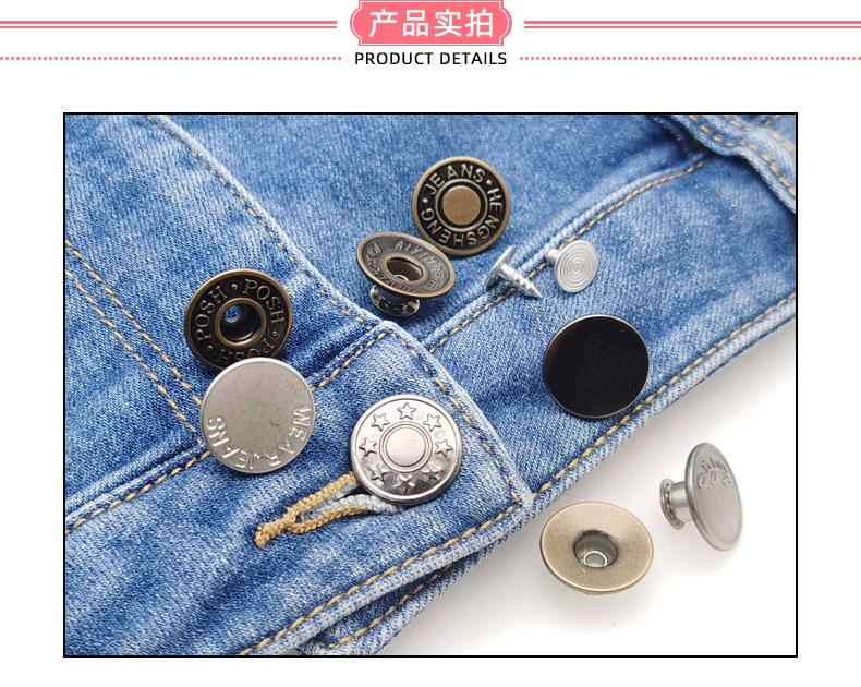 Botón Desmontable Sin Clavos Jeans I-Hebilla Overol Botón Metálico Redondo Abrigo de Mezclilla Botón de Agitación
