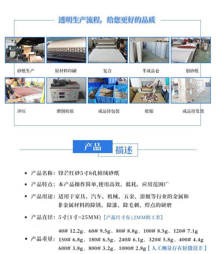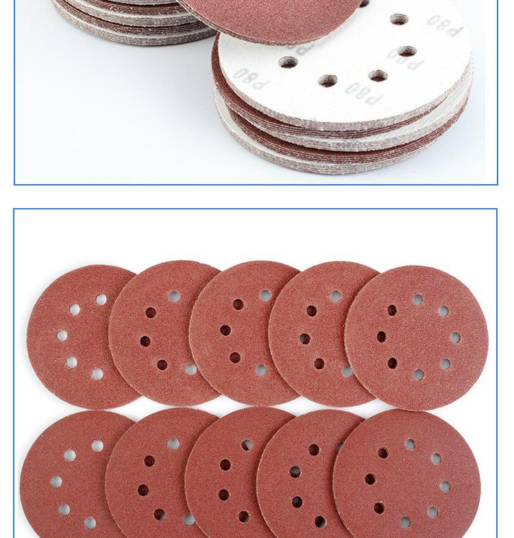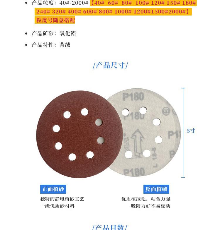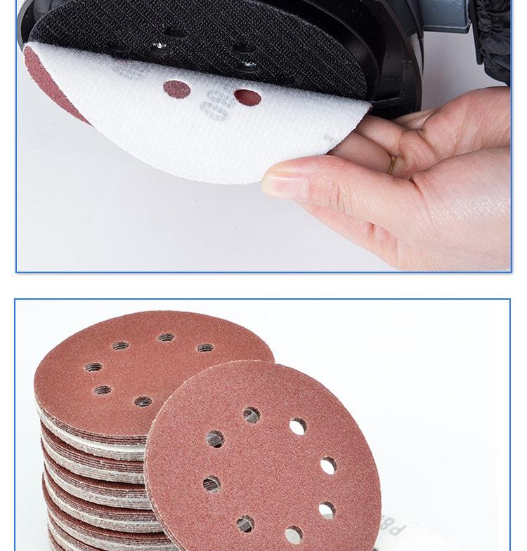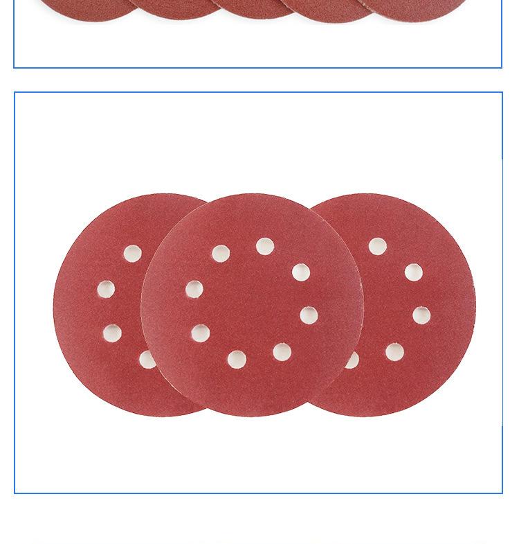 Disco de lija de 5 pulgadas con 8 agujeros y parte posterior de terciopelo rojo, papel de lija flocado para pulido con aire, papel de lija flocado, comercio electrónico transfronterizo, fabricantes de Amazon