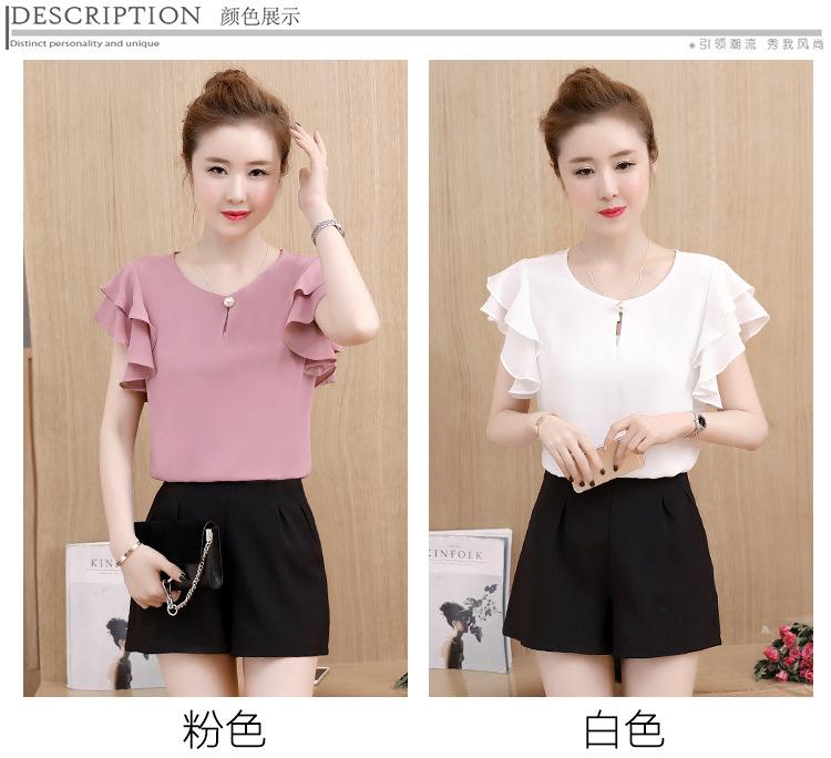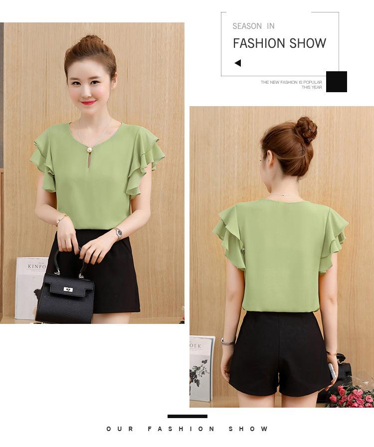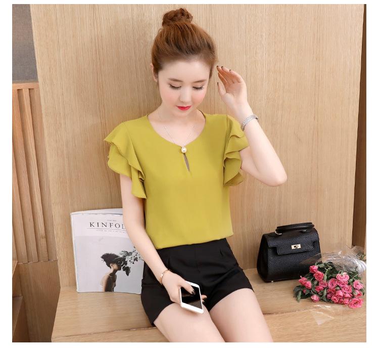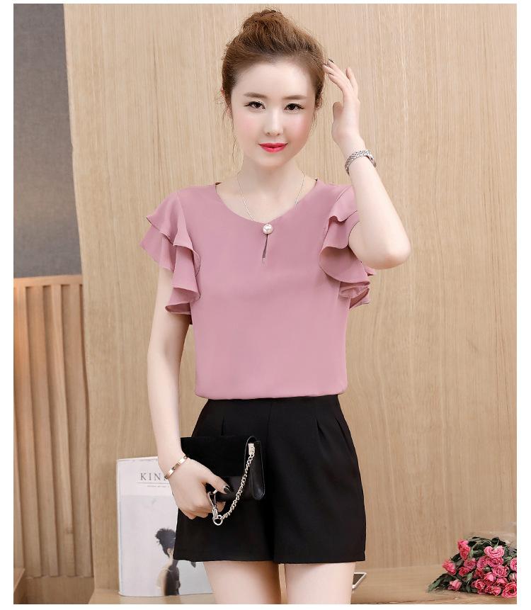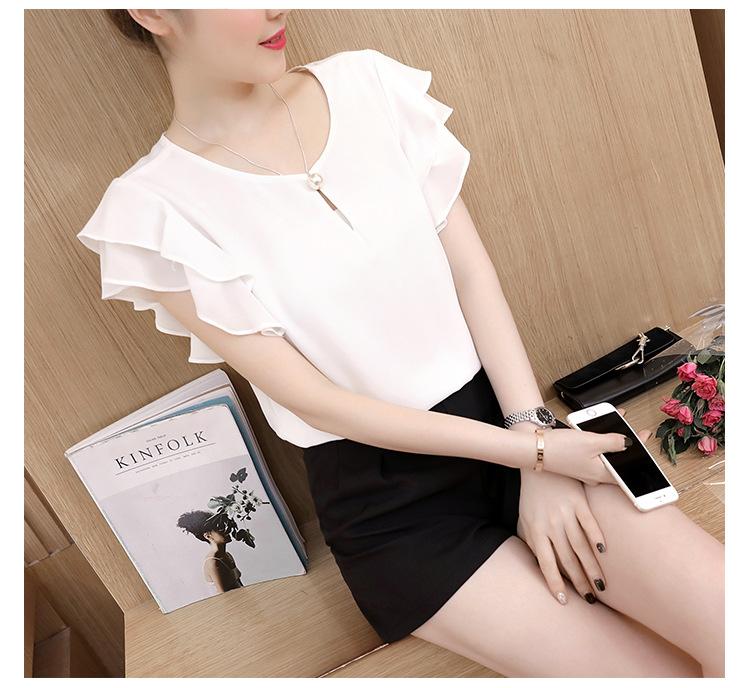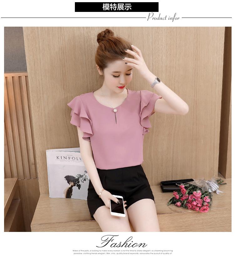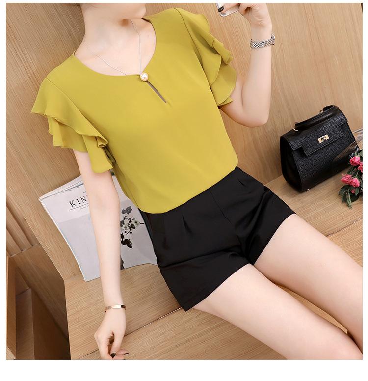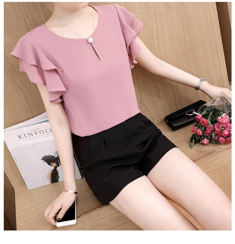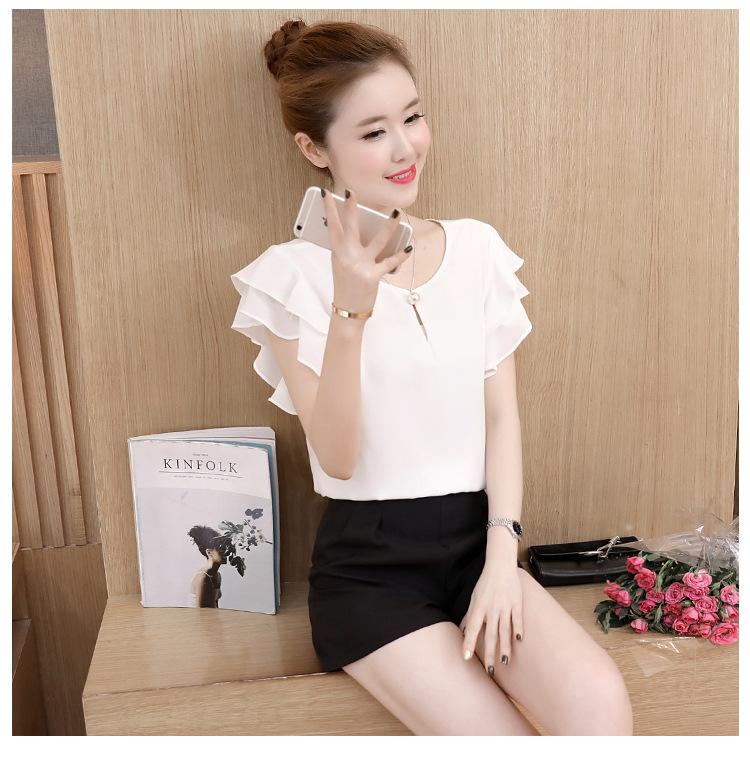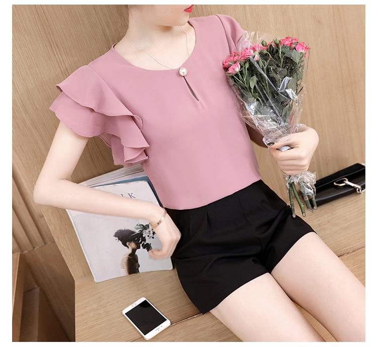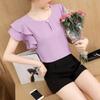 Ropa de Verano Transfronteriza de Comercio Exterior Nueva Moda Estilo Coreano Versátil Dulce Manga Corta Suave Súper Hada Elegante Camisa de Chifón Top Trendy