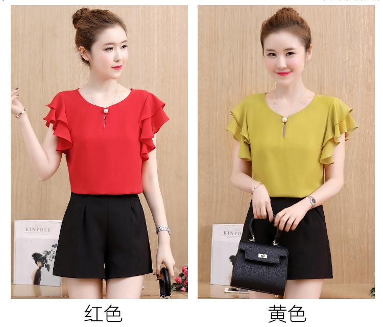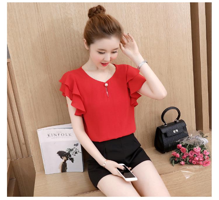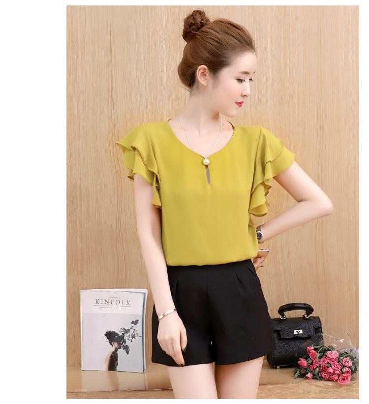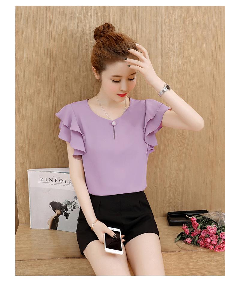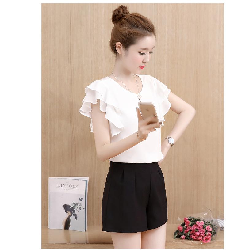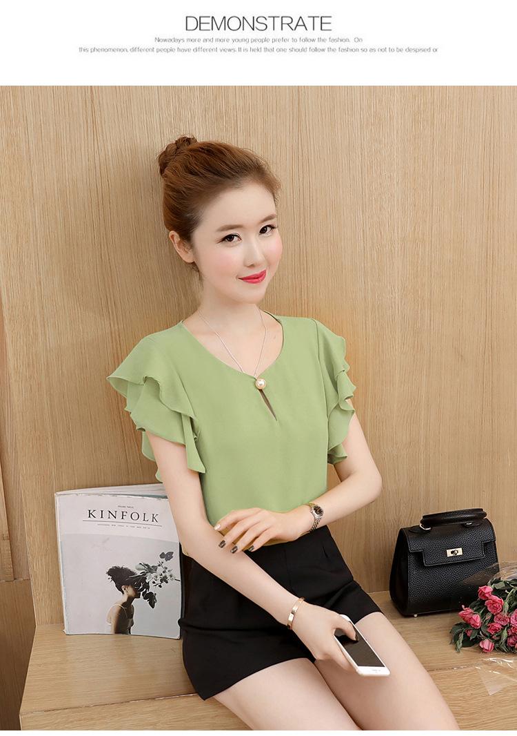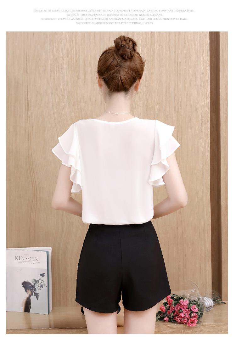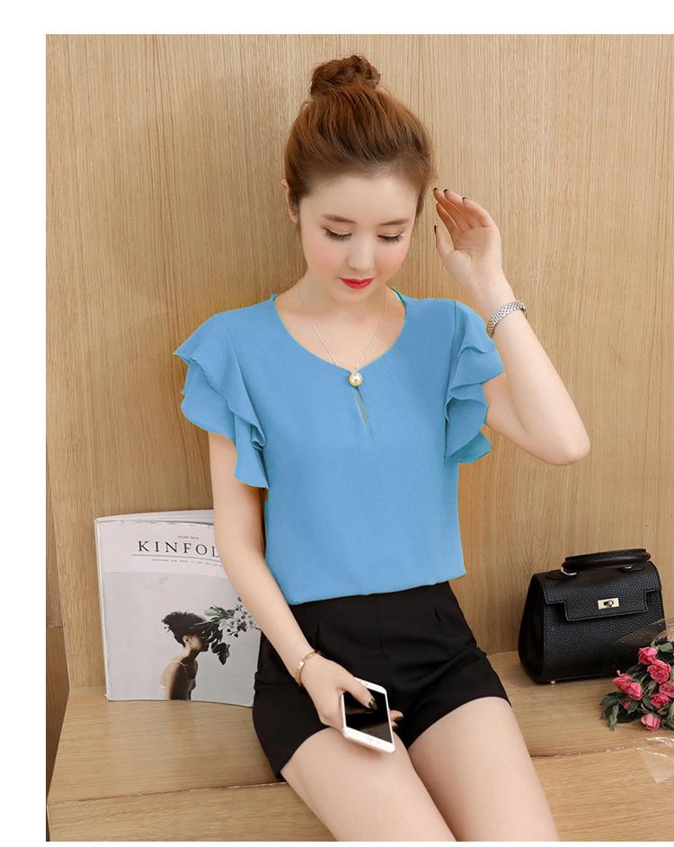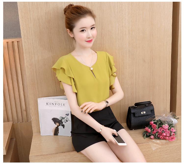 Ropa de Verano Transfronteriza de Comercio Exterior Nueva Moda Estilo Coreano Versátil Dulce Manga Corta Suave Súper Hada Elegante Camisa de Chifón Top Trendy