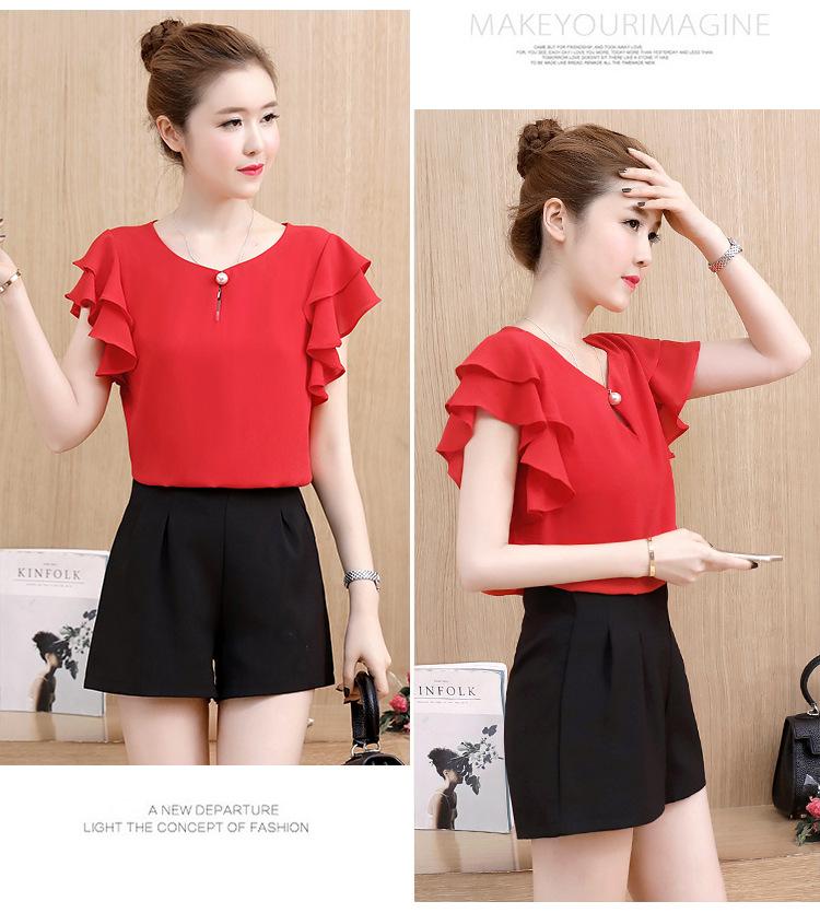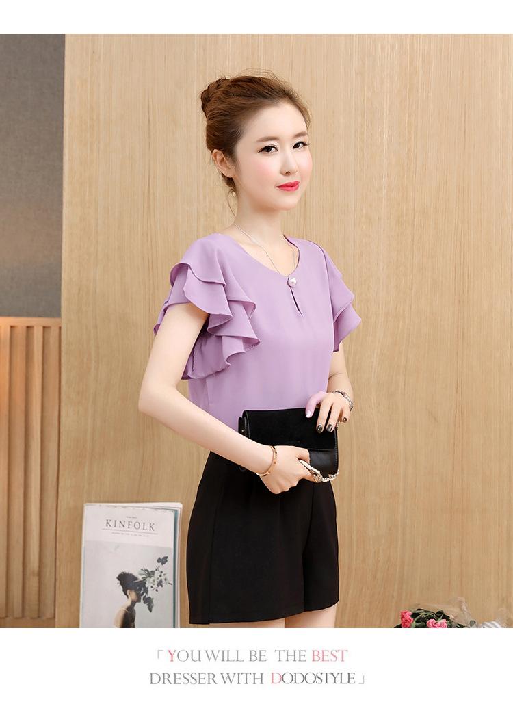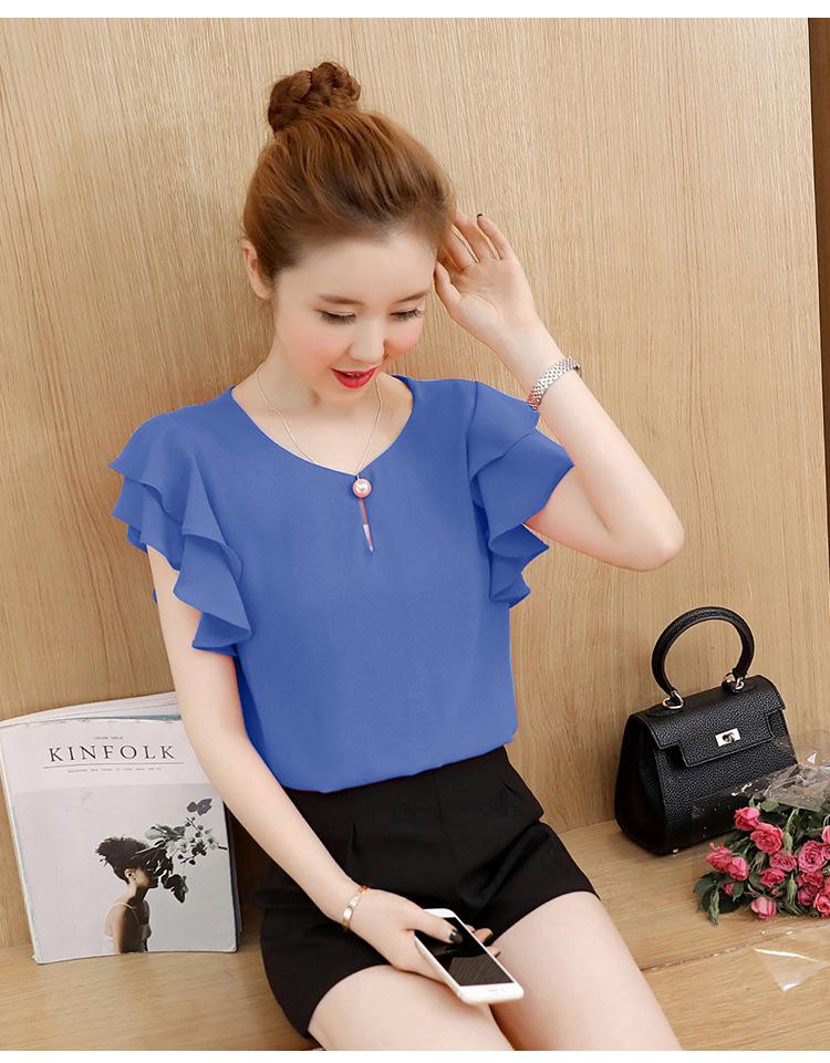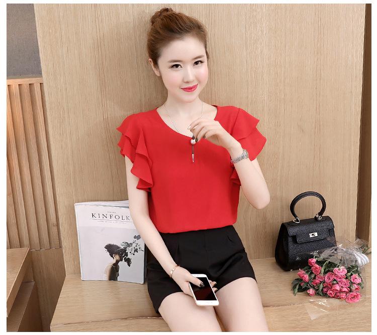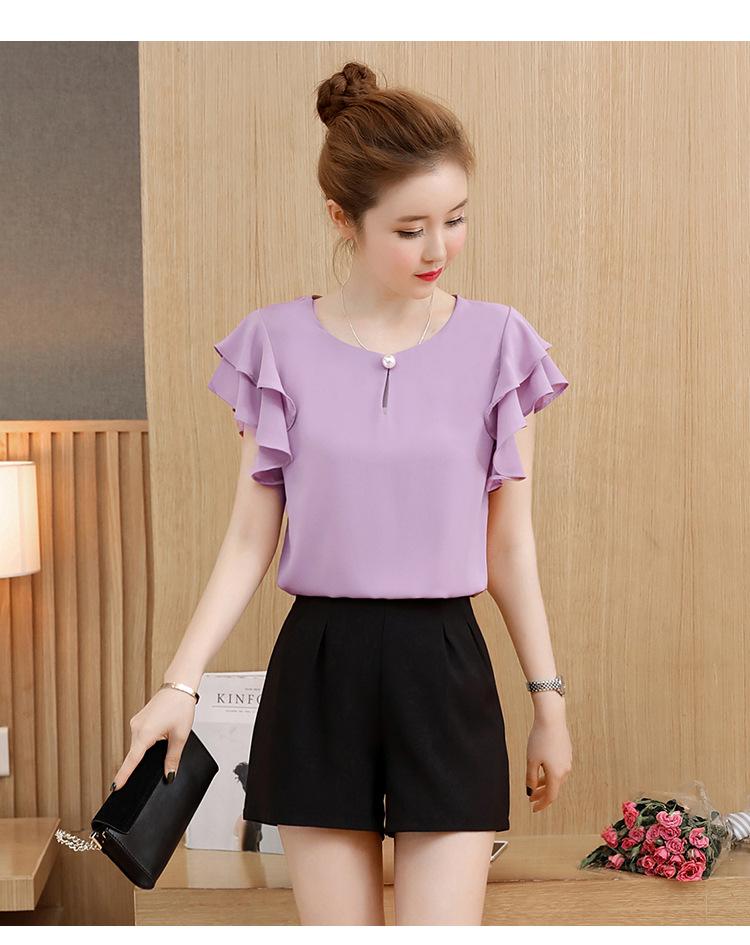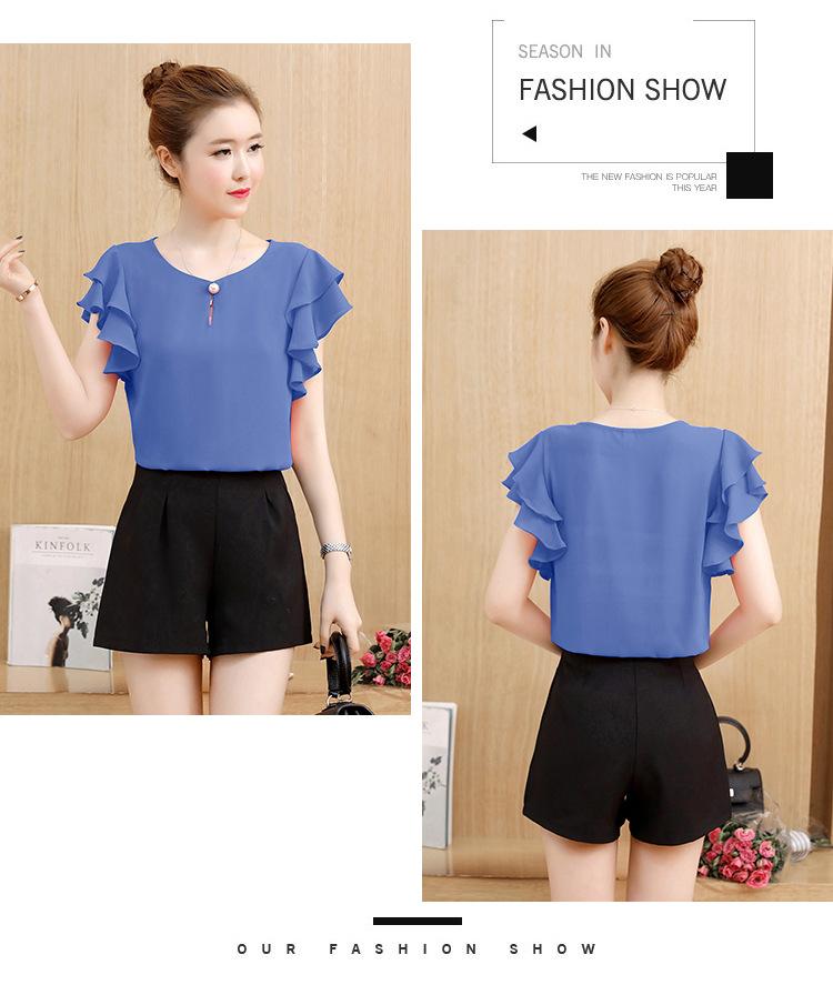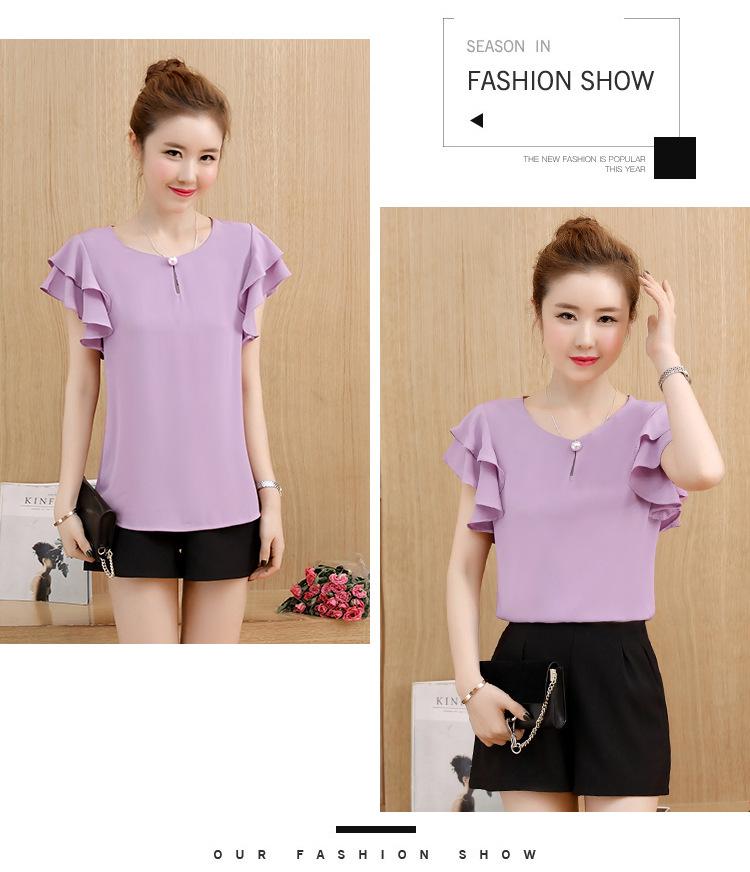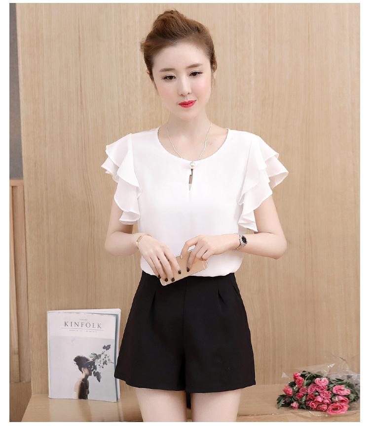 Ropa de Verano Transfronteriza de Comercio Exterior Nueva Moda Estilo Coreano Versátil Dulce Manga Corta Suave Súper Hada Elegante Camisa de Chifón Top Trendy