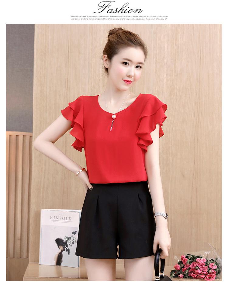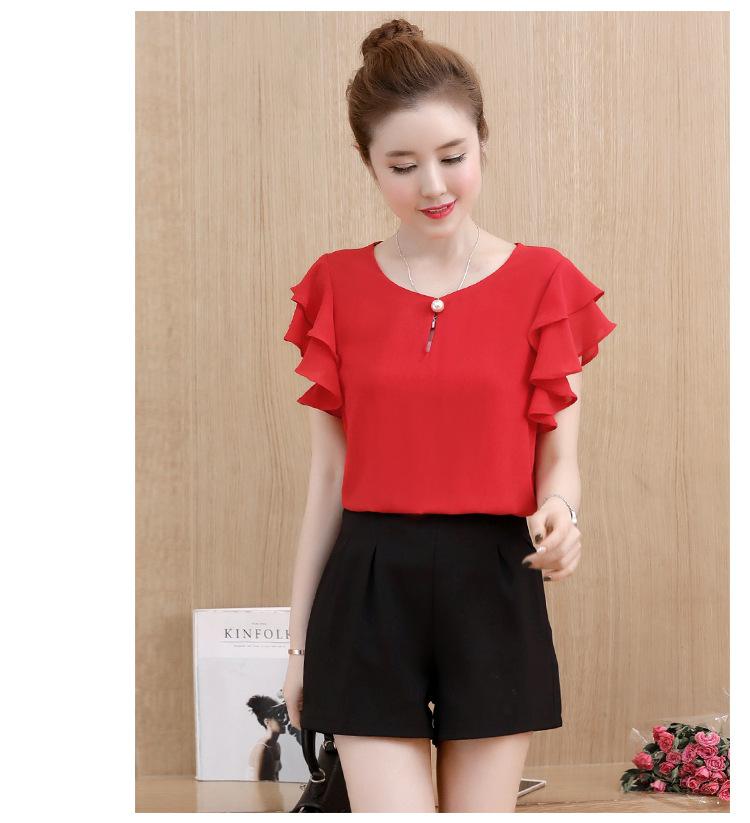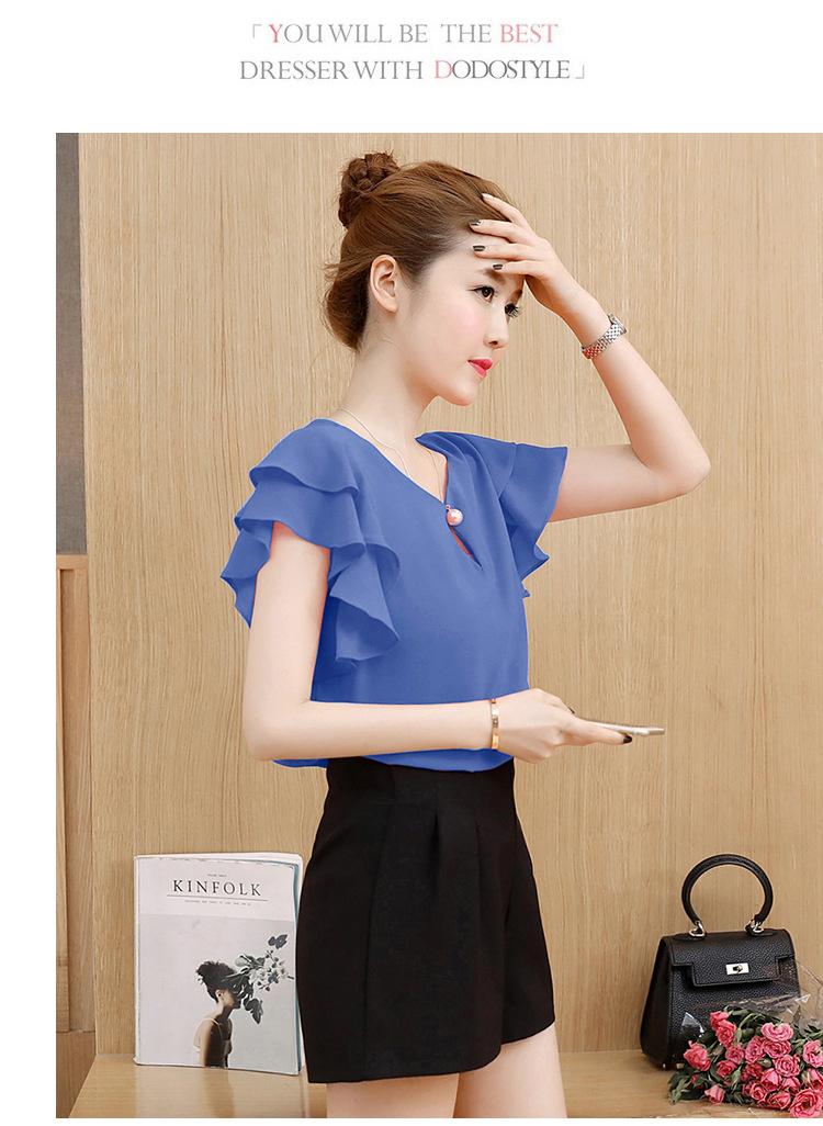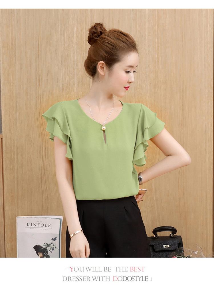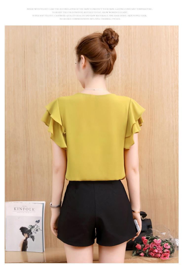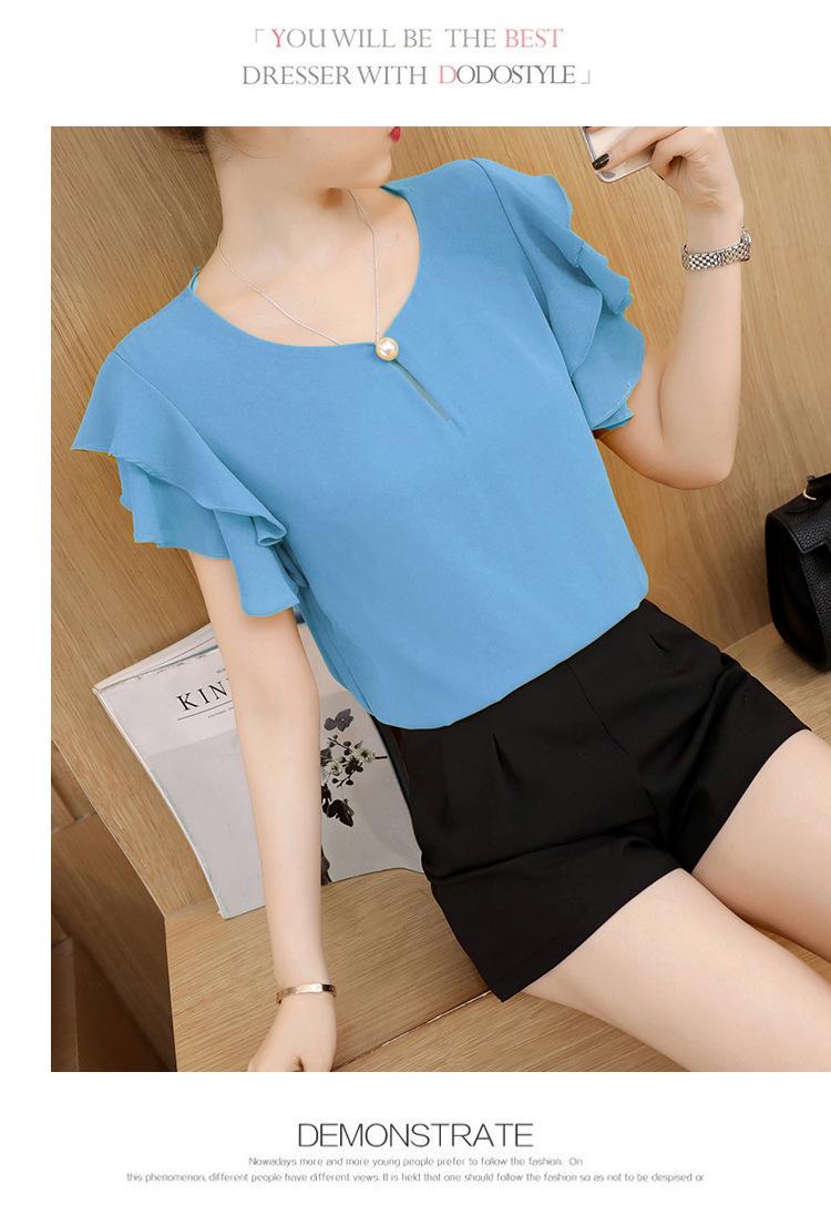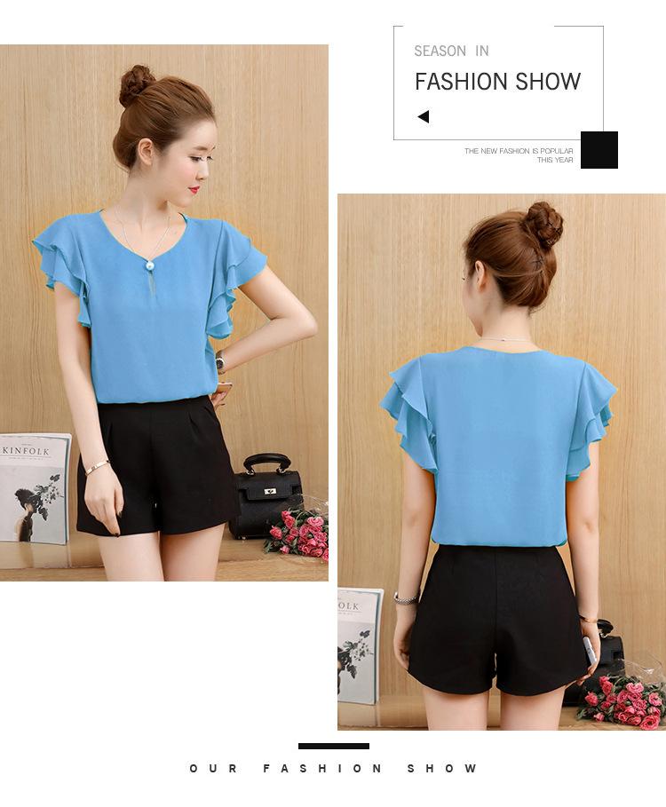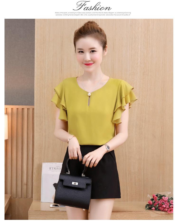 Ropa de Verano Transfronteriza de Comercio Exterior Nueva Moda Estilo Coreano Versátil Dulce Manga Corta Suave Súper Hada Elegante Camisa de Chifón Top Trendy