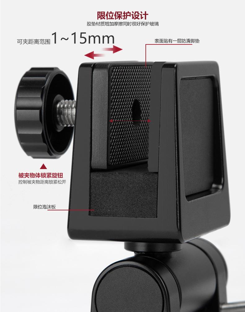 Abrazadera de Ventana Telescopio Cámara Mirrorless Montura de Gimbal Coche Metal Soporte de Disparo para Coche Abrazadera de Vidrio Rotación de 360 Grados