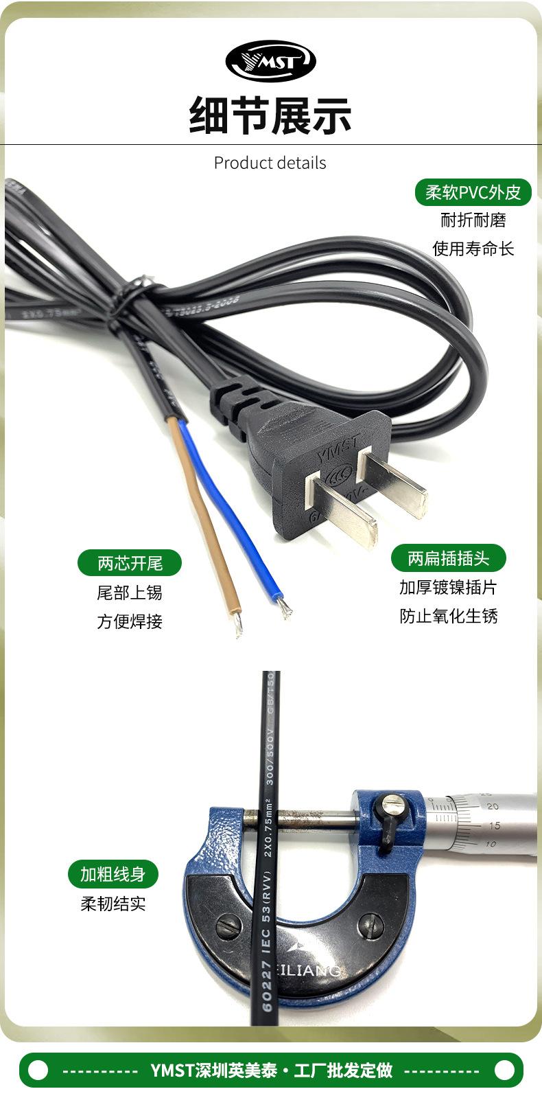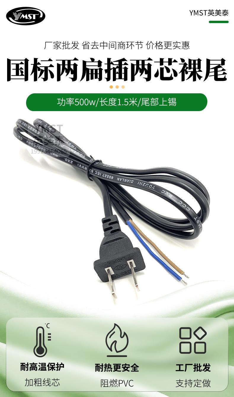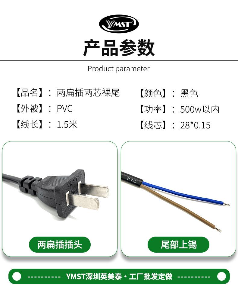 Nota: Por defecto, se proporciona un cable de alimentación de 1.5 metros con dos clavijas planas y dos extremos pelados (los extremos están estañados).