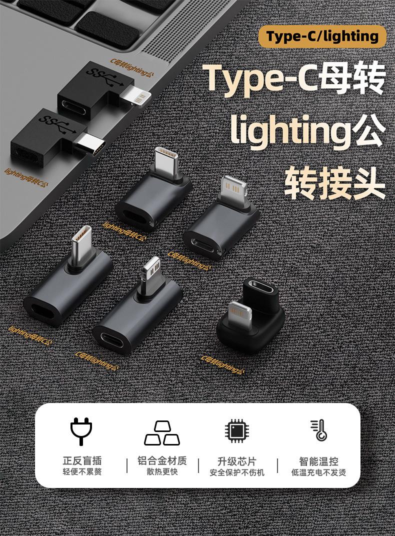 C female to lighting male elbow, C male to lighting female elbow, C female to lighting male middle plug, C fem...
