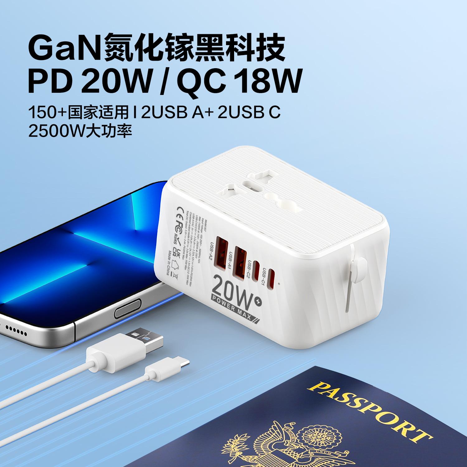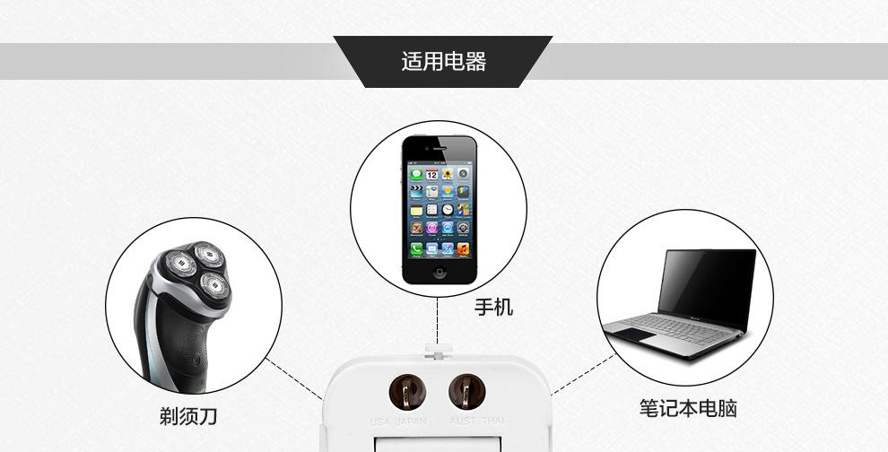 Enchufe nacional, la parte del enchufe adopta un diseño de enchufe universal combinado, aceptando la conversión mutua de función de enchufes de más de 150 países en todo el mundo.
