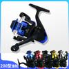 Carrete de pesca pequeño tipo 200, carrete de plástico, cuerpo de plástico, balancín plegable de plástico de goma ordinario, el balancín se puede intercambiar entre izquierda y derecha.