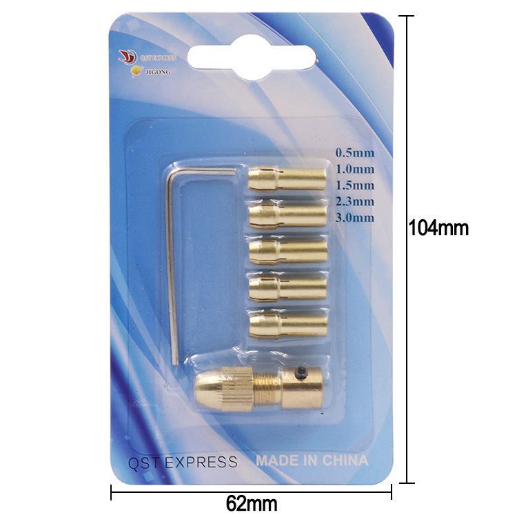 Es adecuado para brocas de 0.5-3.0MM y se puede usar con la broca para formar un taladro manual o un taladro eléctrico. Se puede usar para perforar agujeros en tableros ABS, tableros de balsa, cartón, etc. También se puede usar para otros fines.