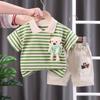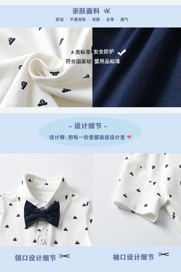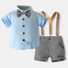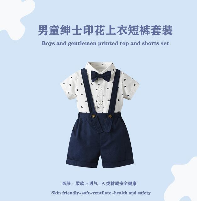 Traje de verano de manga corta para bebé niño, vestido camisero de caballero para bebé, traje de verano de dos piezas para niño guapo de celebridad de Internet