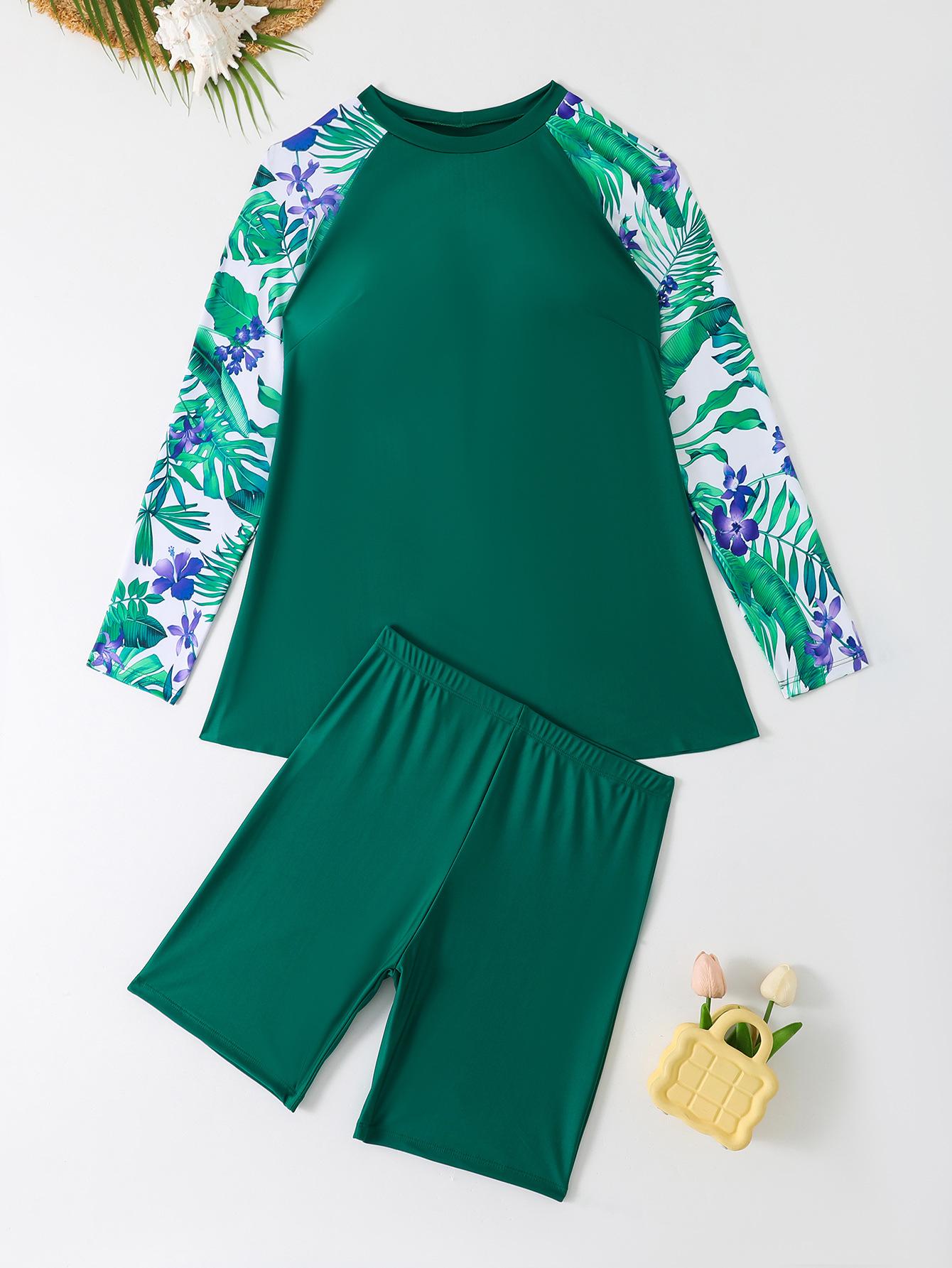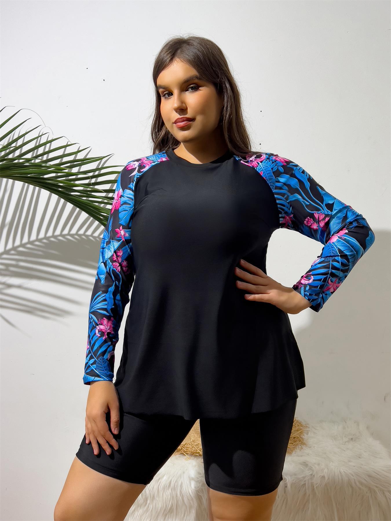 Traje de baño tankini de manga larga con abertura y ángulo plano para mujer, talla grande europea y americana, nuevo, 2024