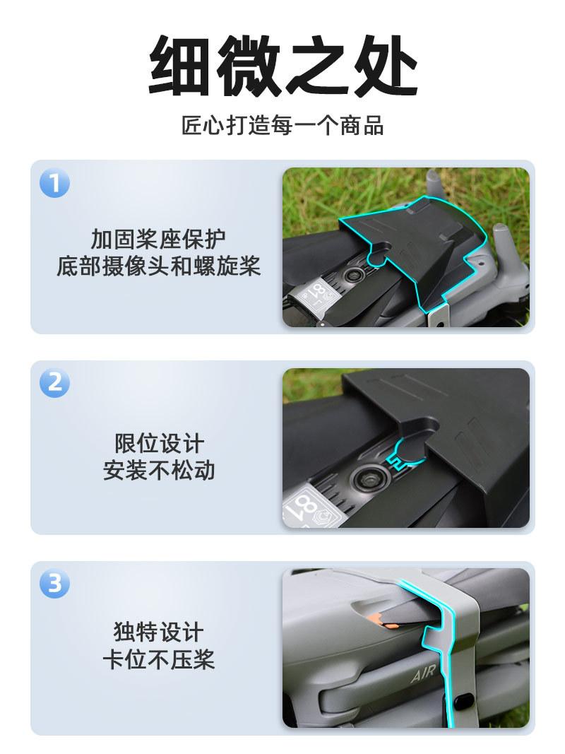 4. Diseño de chasis semicerrado, la base puede envolver la parte inferior del dron cuando se guarda;