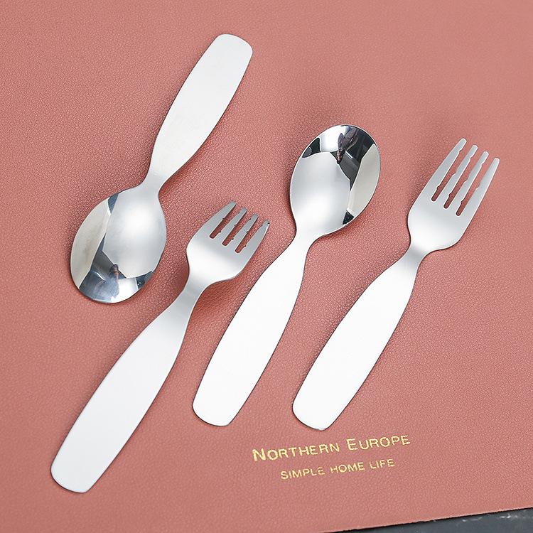 Cuchara tenedor de acero inoxidable para niños de 1 a 5 años, vajilla para bebés, cuchara para sopa, tenedor de fruta, cuchara de postre, traje