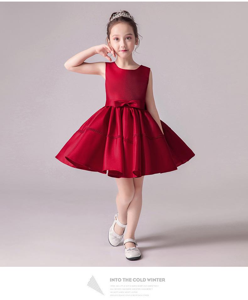 Vestido de Niña 2025 Primavera Nuevo Falda Tutú Roja Ropa de Presentación para Pequeña Anfitriona Piano Vestido de Princesa para Niñas