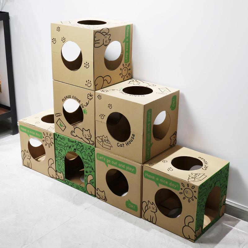Rascador para Gatos Nido para Gatos Casa para Gatos Grandes Túnel Parque Montaje Libre Plato para Rascar Afilador de Uñas Apilable Le Nido de Cartón Corrugado Habitación Papel