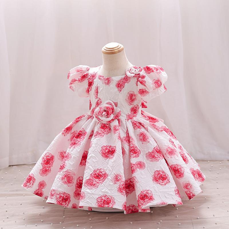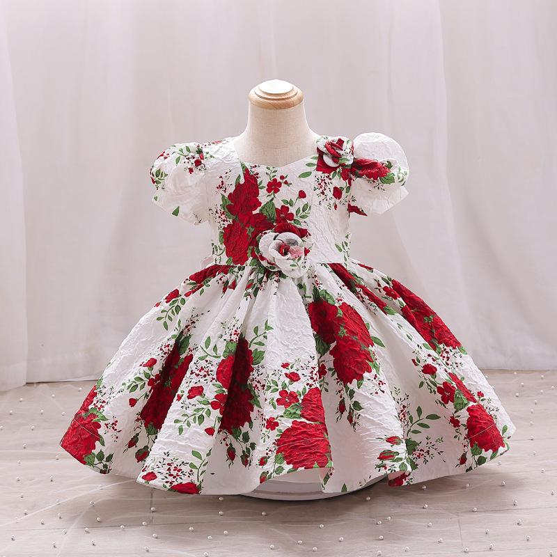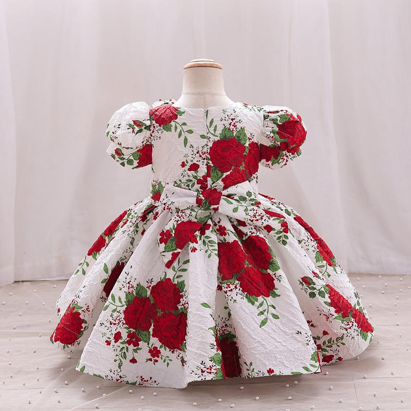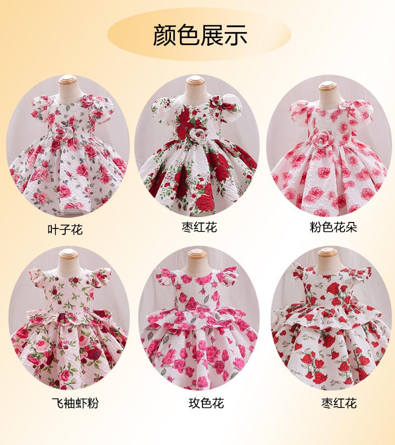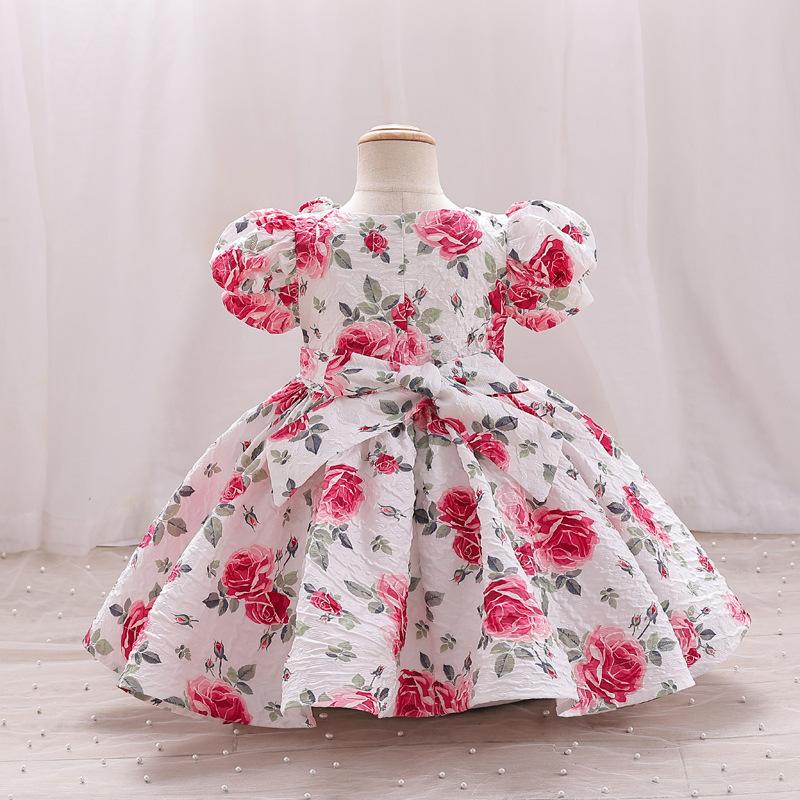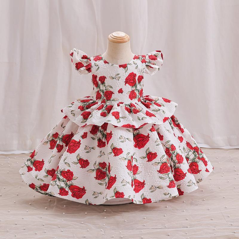 Vestido de niña con estampado de alta gama, nuevo vestido de princesa 2023, vestido de niña de las flores de un año