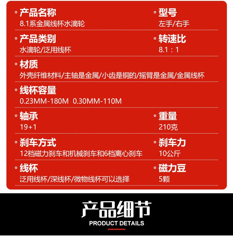 Carrete de gota de agua Luya súper objeto lanzamiento largo línea anti-explosión mano izquierda y derecha equipo de pesca de metal carrete de gota de agua de tres frenos