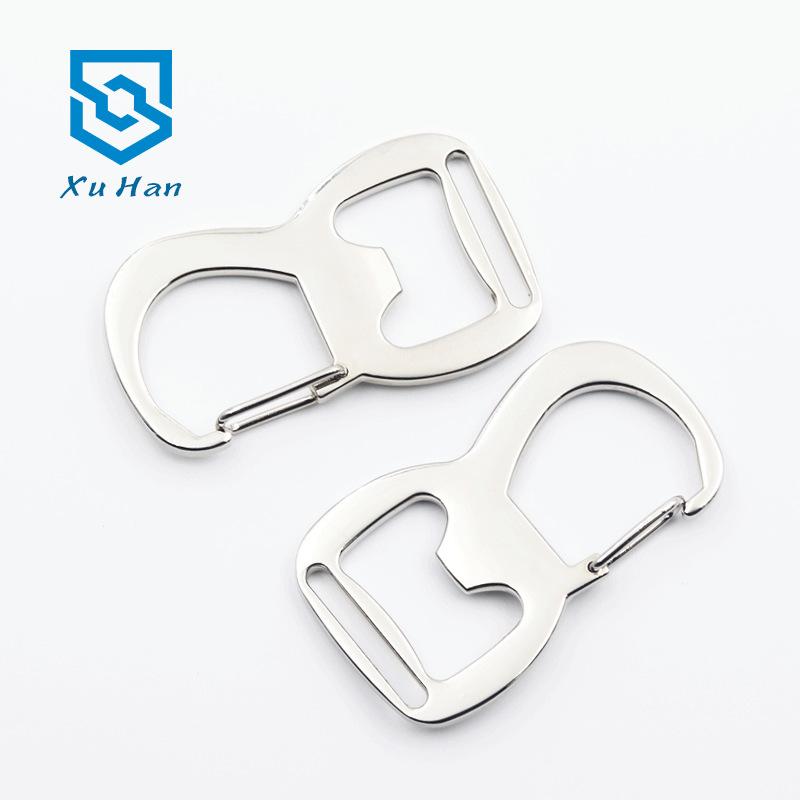 Abridor de botellas con resorte de aleación de zinc, hebilla de sujeción rápida, llavero multifuncional con cinta, accesorios para cordón de exterior, venta al por mayor.
