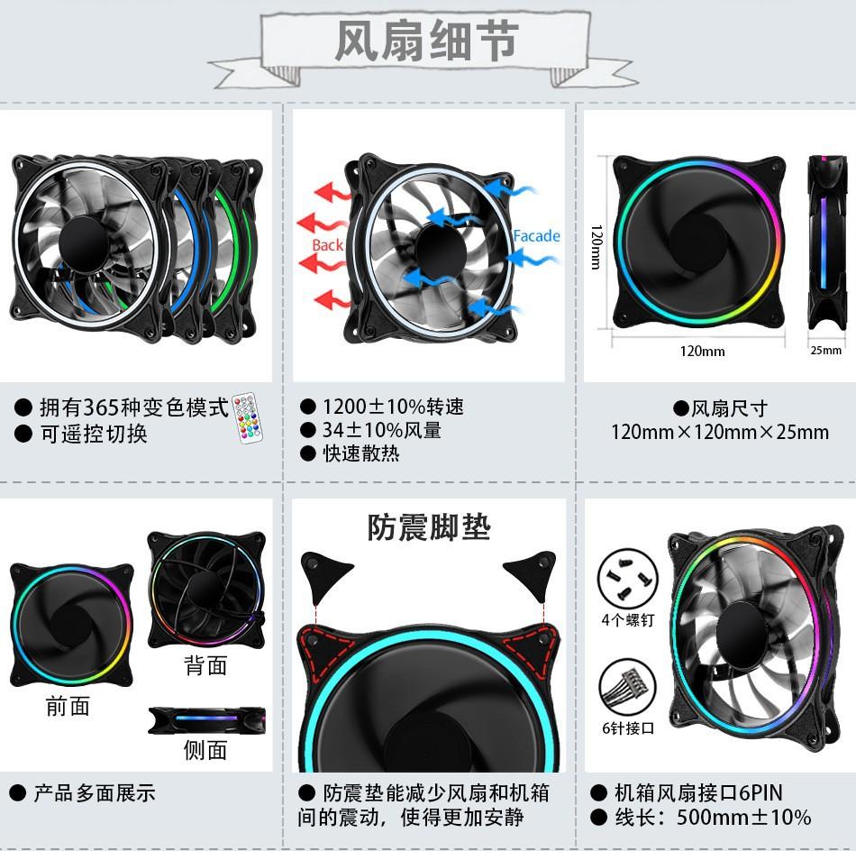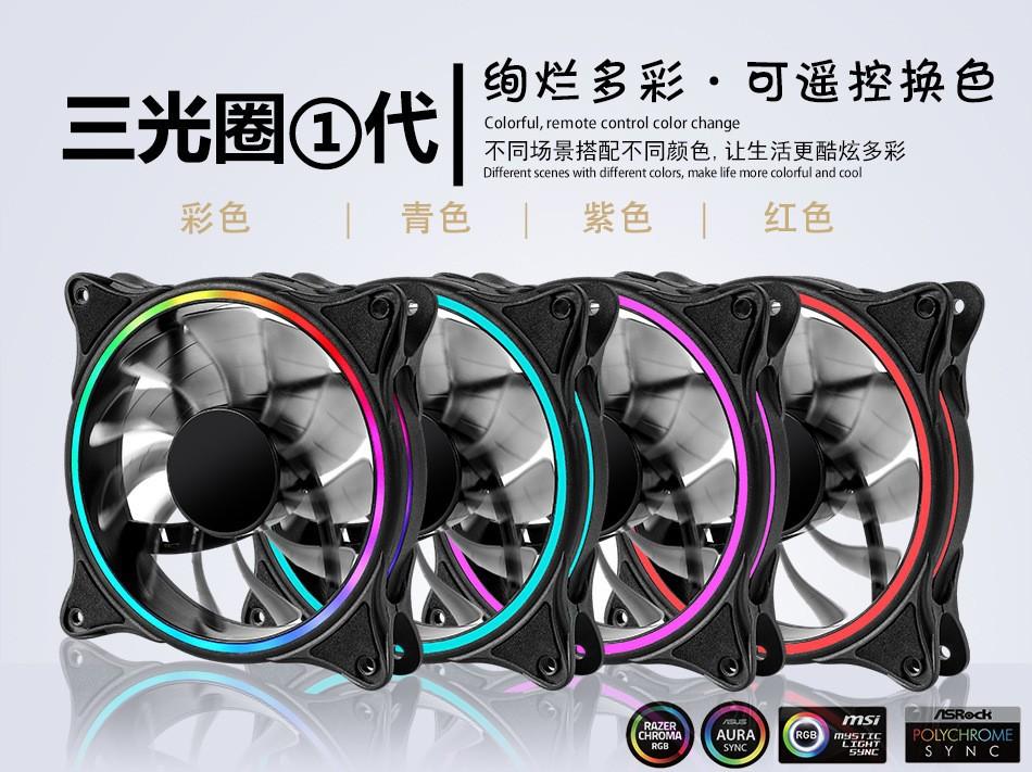 Ventilador de chasis RGB de tres aperturas LOVINGCOOL, radiador de computadora de 12 cm, ventilador externo silencioso y luminoso.