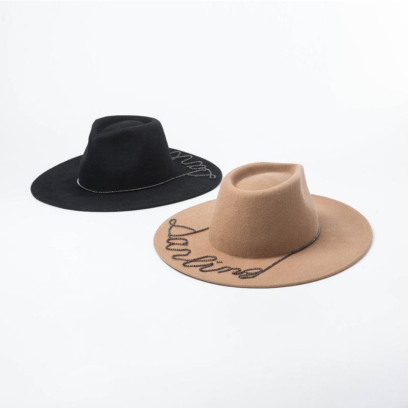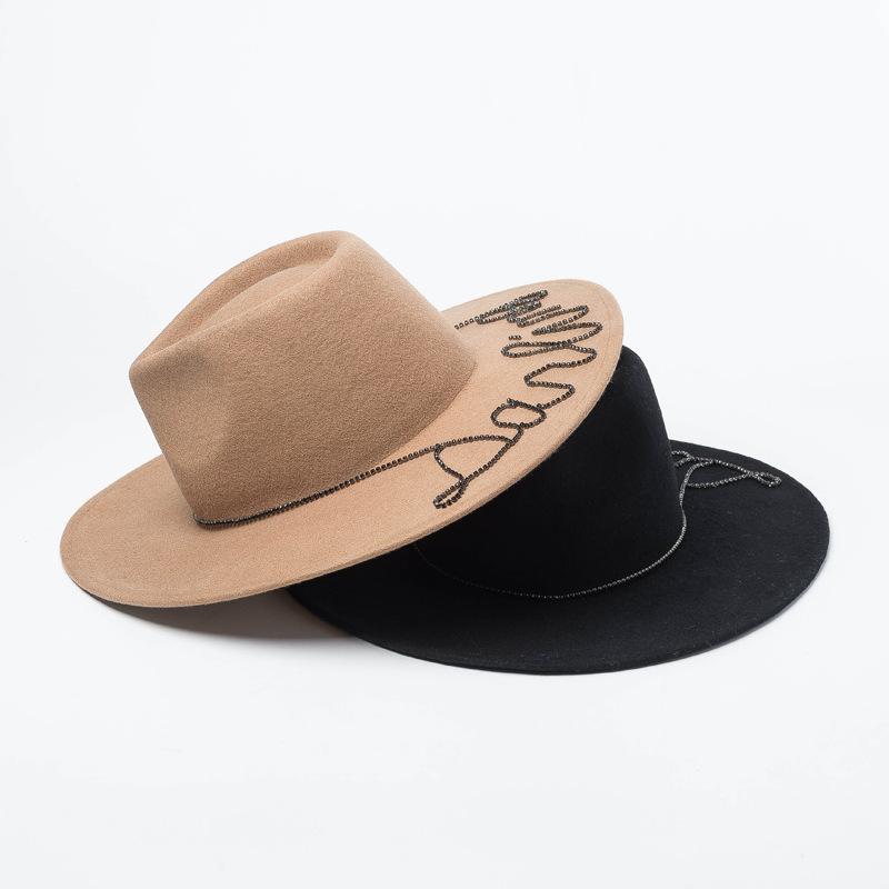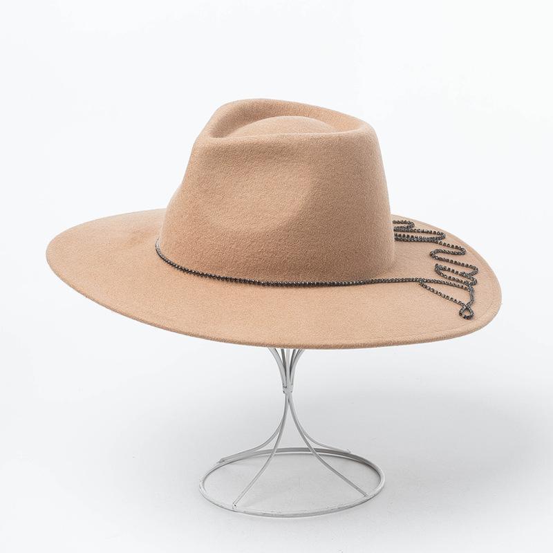 Nombre del producto: Sombrero de jazz de ala ancha de lana de diamante hecho a mano nuevo de otoño e invierno europeo y americano para damas, sombrero de jazz de estilo de compras de moda
