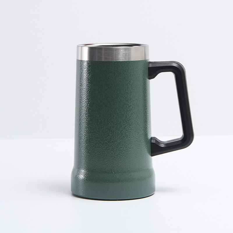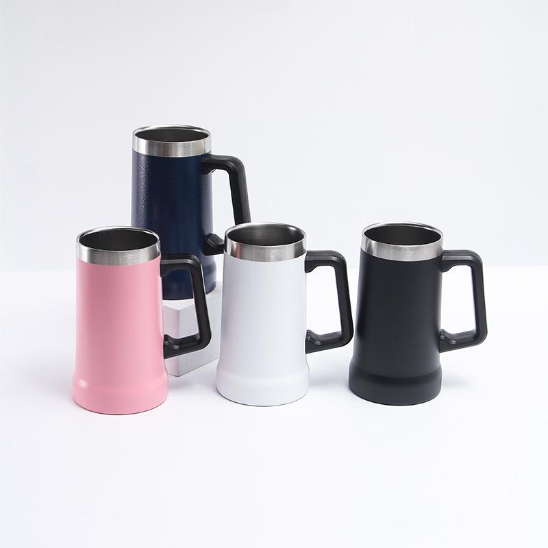 Venta caliente de comercio exterior, taza de cerveza de acero inoxidable de 24 oz, taza de gran capacidad con asa, taza térmica al vacío portátil, venta al por mayor