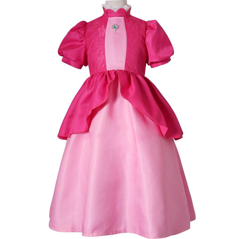 Disfraz de Super Mario Disfraz de la Princesa Peach Halloween Niños Vestido Rosa Disfraz de Cosplay