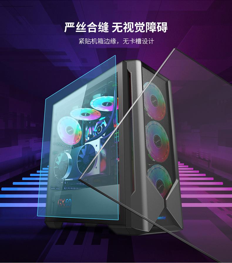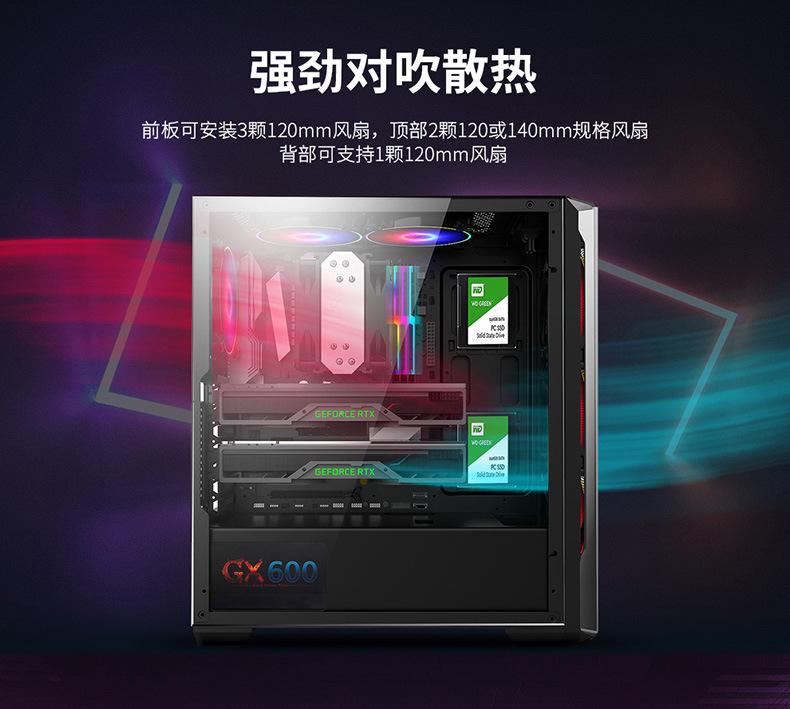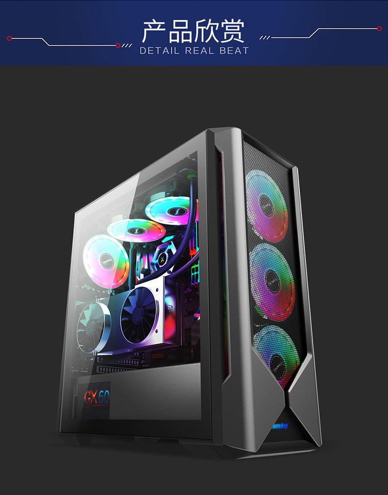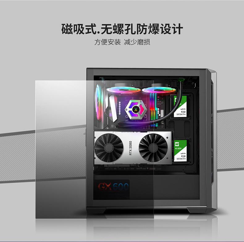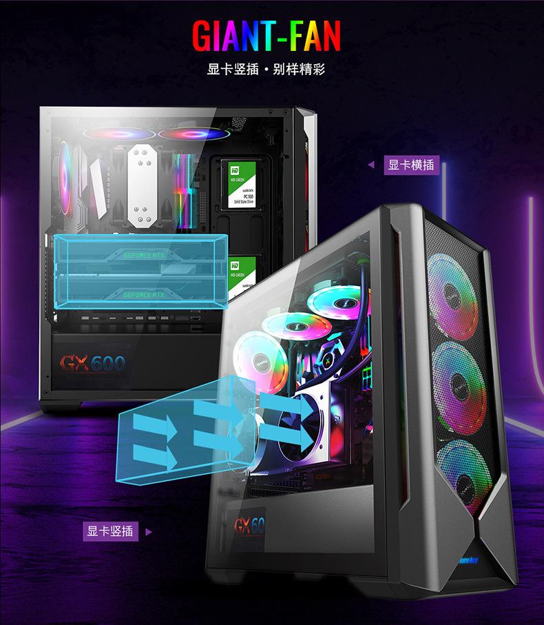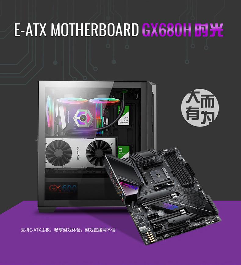 Chasis para juegos de deportes electrónicos Hangjia GX680H con lateral de vidrio templado transparente y tarjeta gráfica vertical E-ATX.