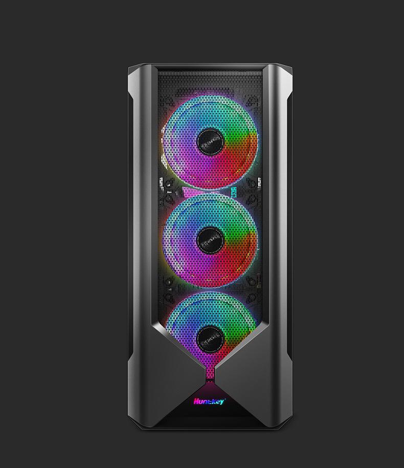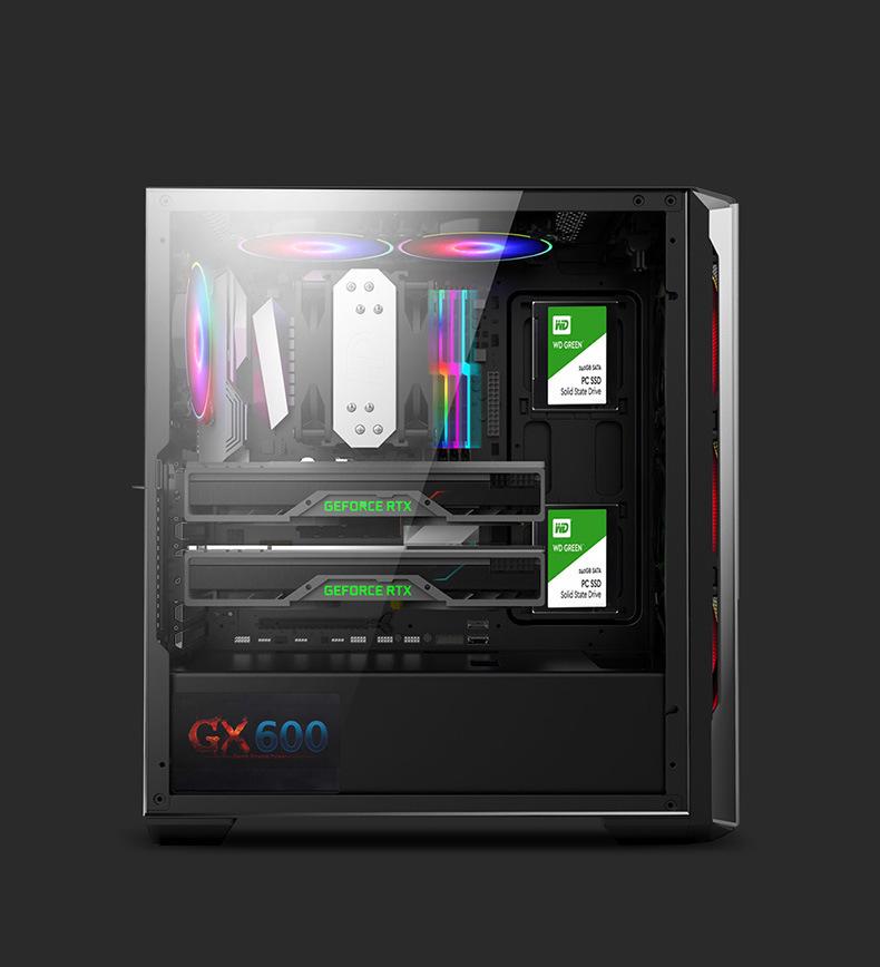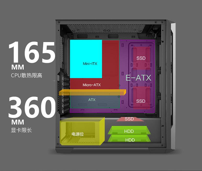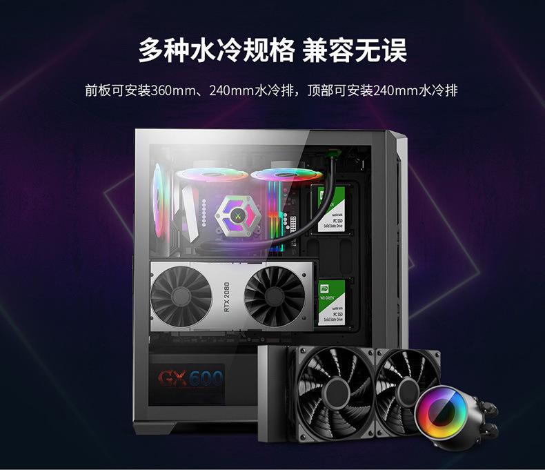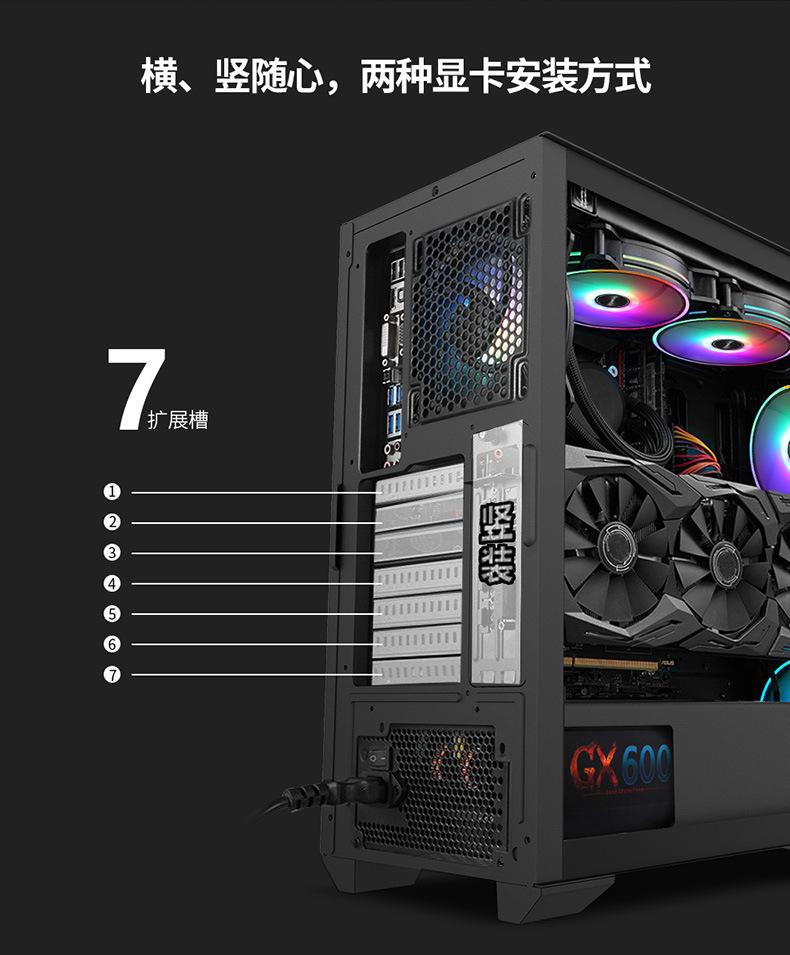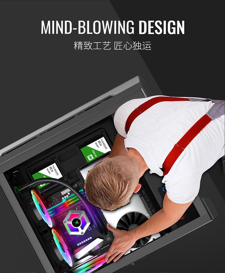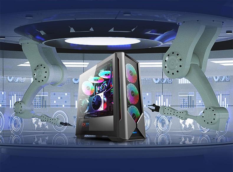 Chasis para juegos de deportes electrónicos Hangjia GX680H con lateral de vidrio templado transparente y tarjeta gráfica vertical E-ATX.