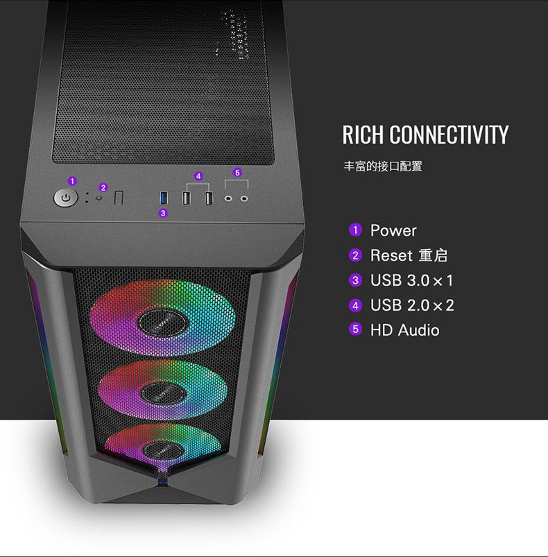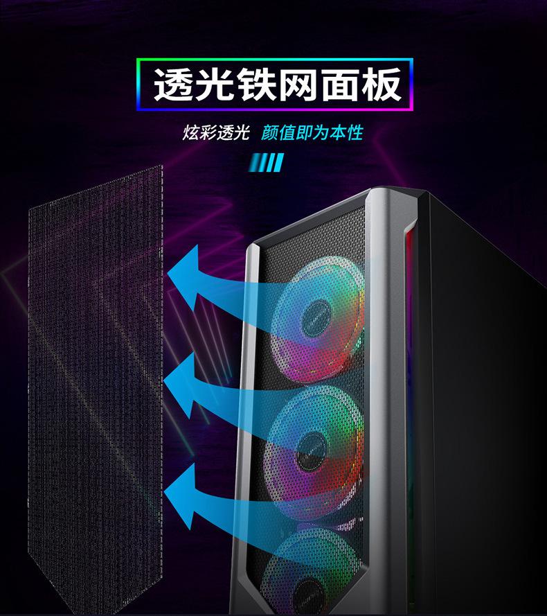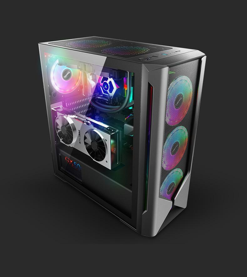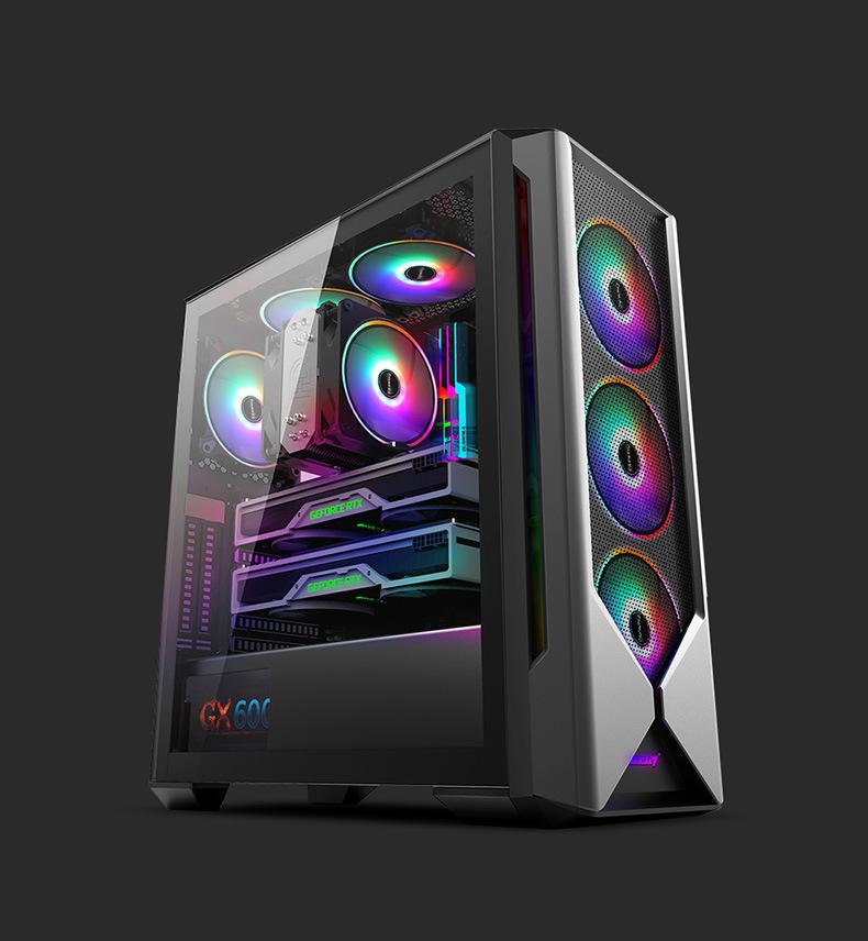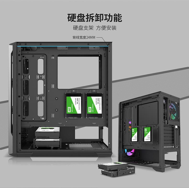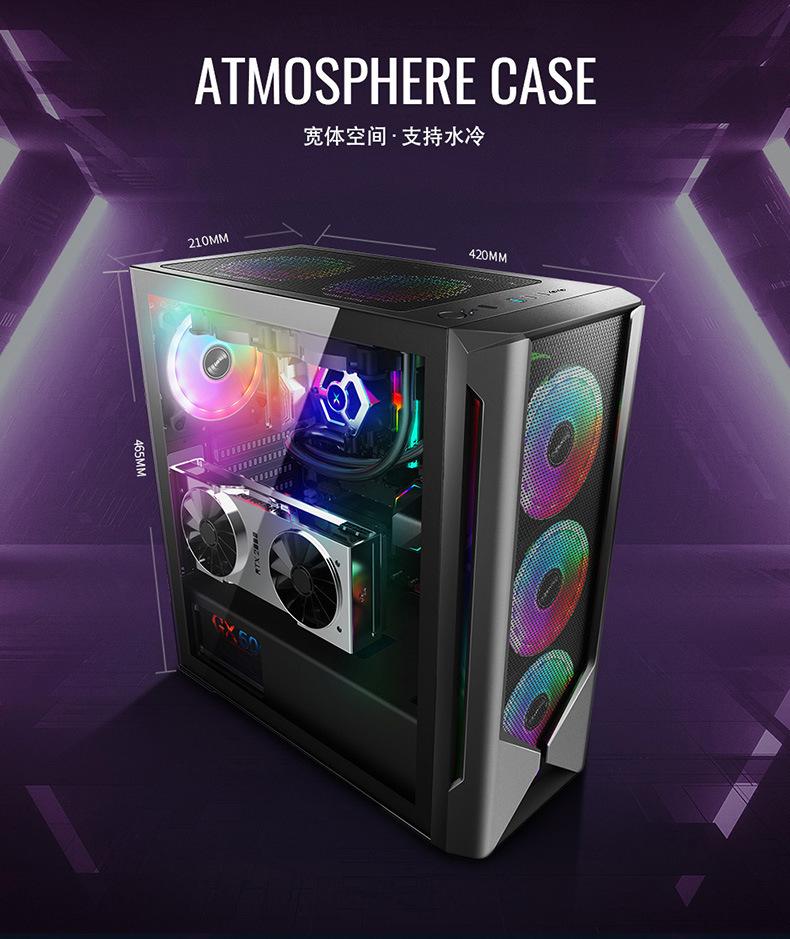 Chasis para juegos de deportes electrónicos Hangjia GX680H con lateral de vidrio templado transparente y tarjeta gráfica vertical E-ATX.