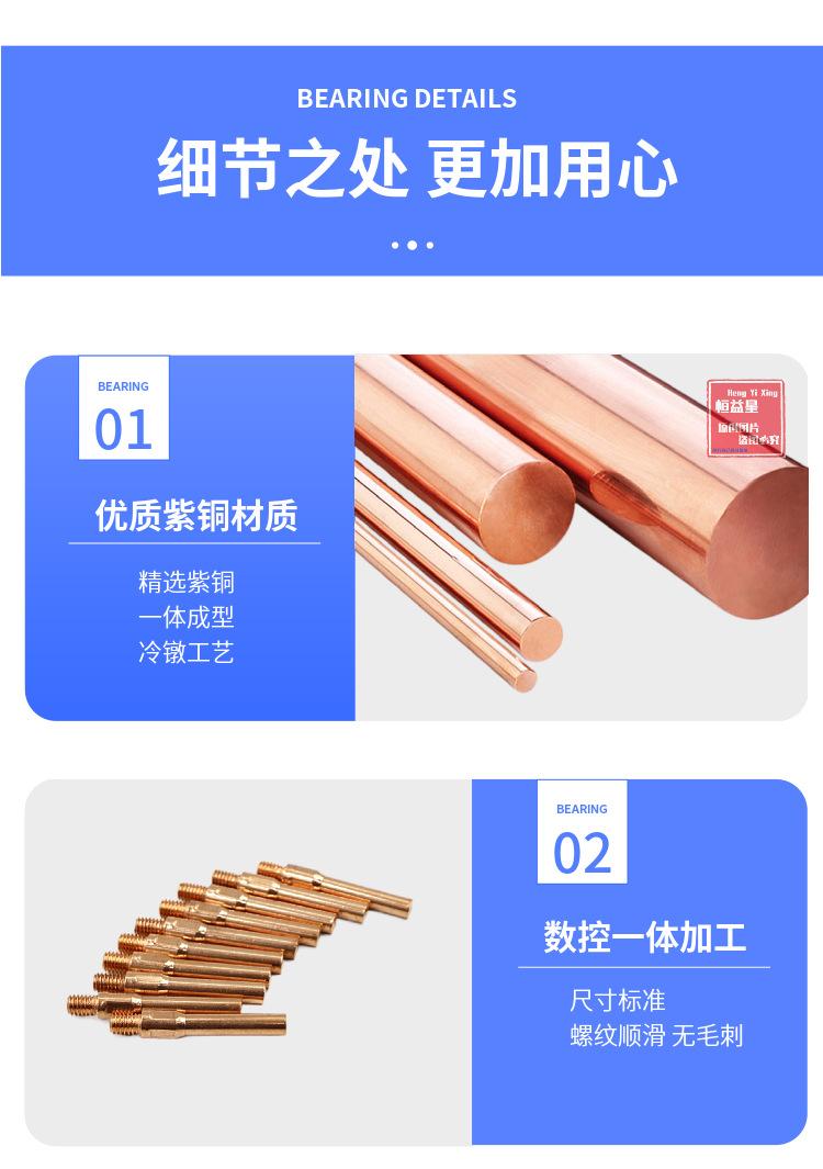 [Venta al por mayor de fábrica] Boquilla de conducción para soplete de soldadura. Dos accesorios garantizados para máquina de soldar. Boquilla de alambre guía de cobre de 6,5 a 7,5 grados, 8,8 grados.