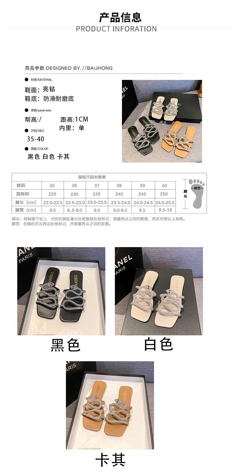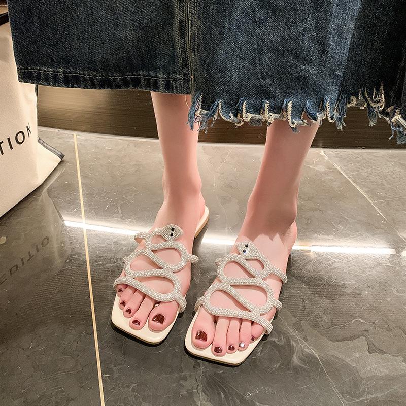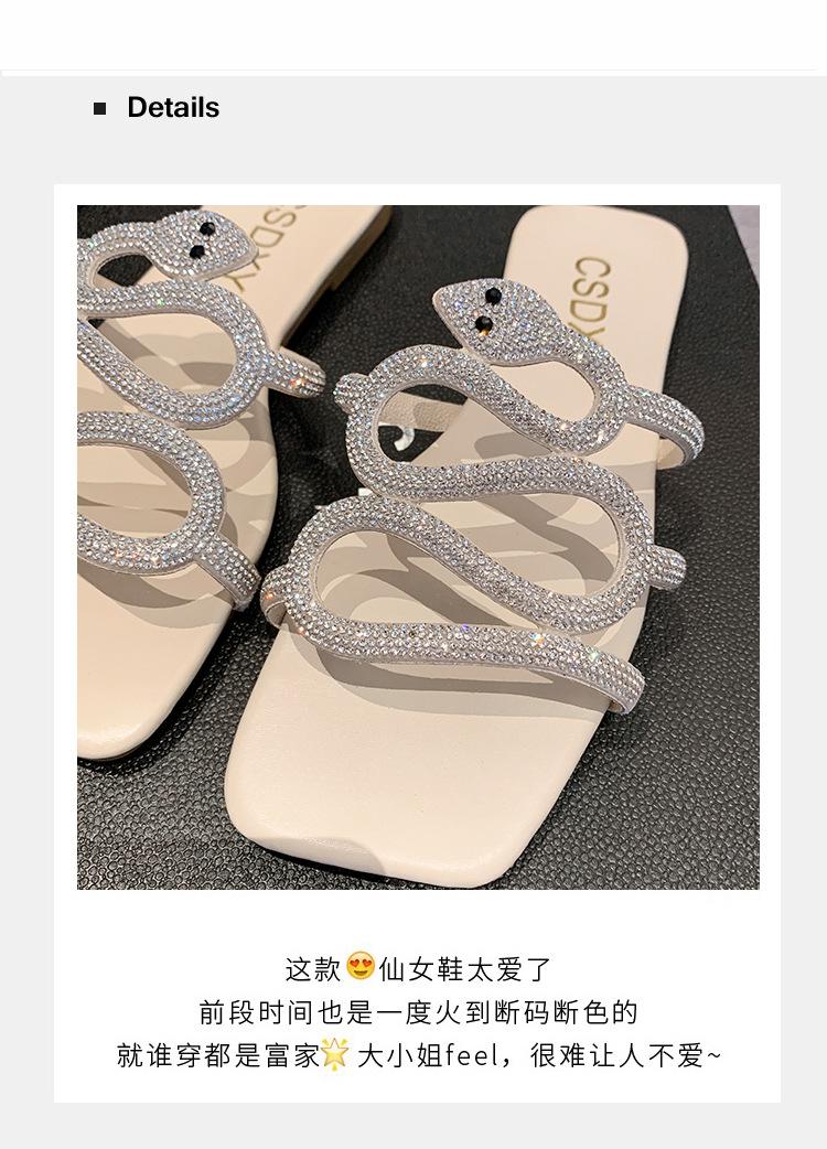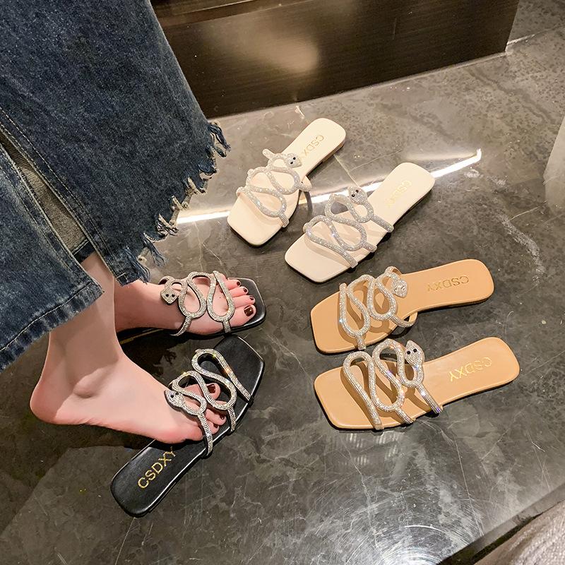 Nuevas Pantuflas Planas con Pedrería en Forma de Serpiente de Comercio Exterior 2024 Resistentes al Desgaste Cómodas Talla Grande Pantuflas de Playa para Exterior para Mujer