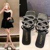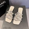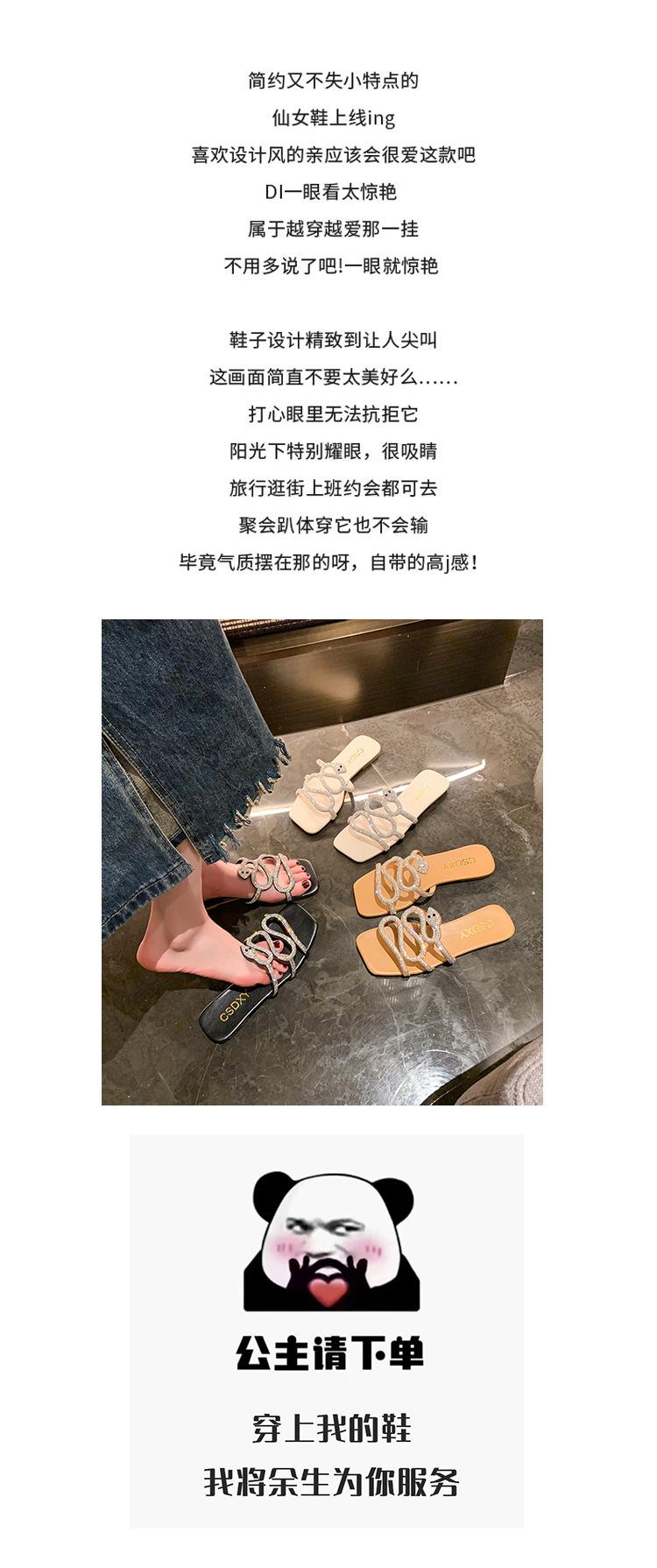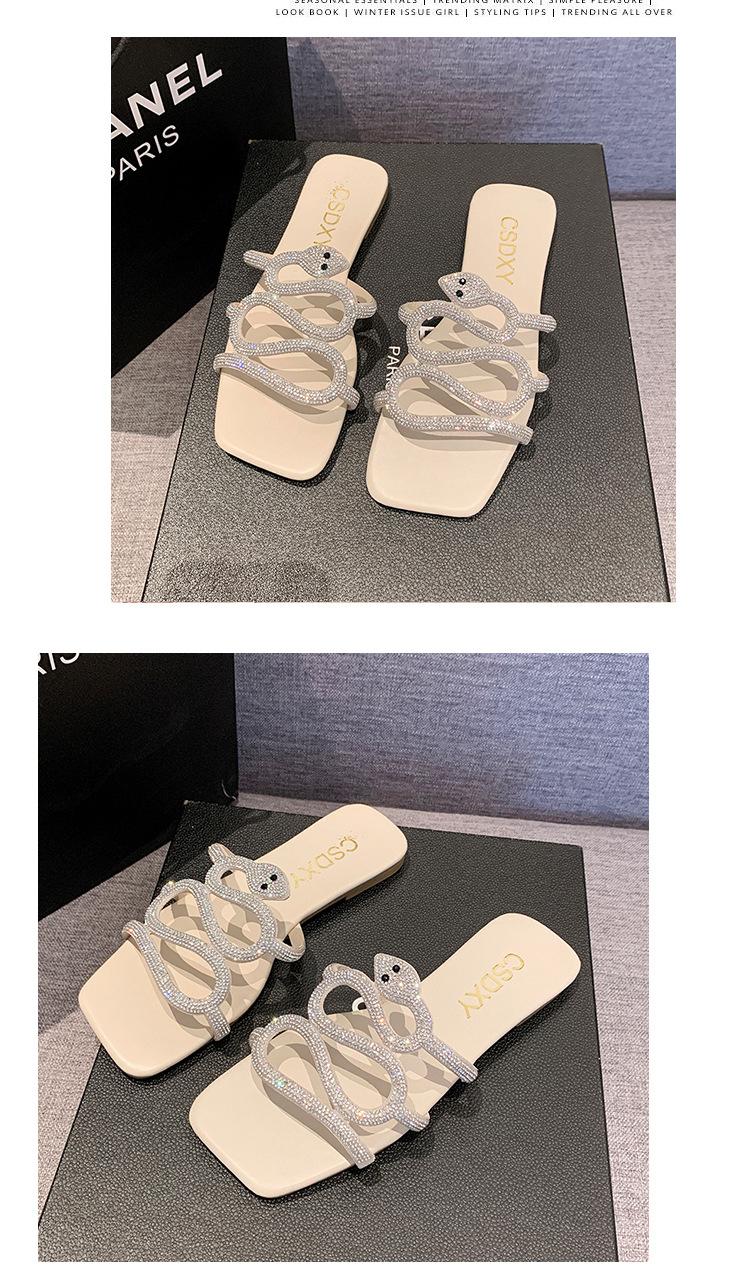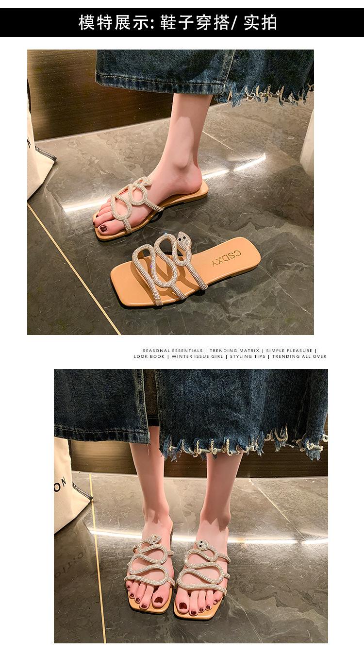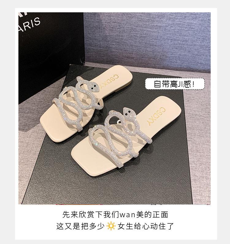 Nuevas Pantuflas Planas con Pedrería en Forma de Serpiente de Comercio Exterior 2024 Resistentes al Desgaste Cómodas Talla Grande Pantuflas de Playa para Exterior para Mujer