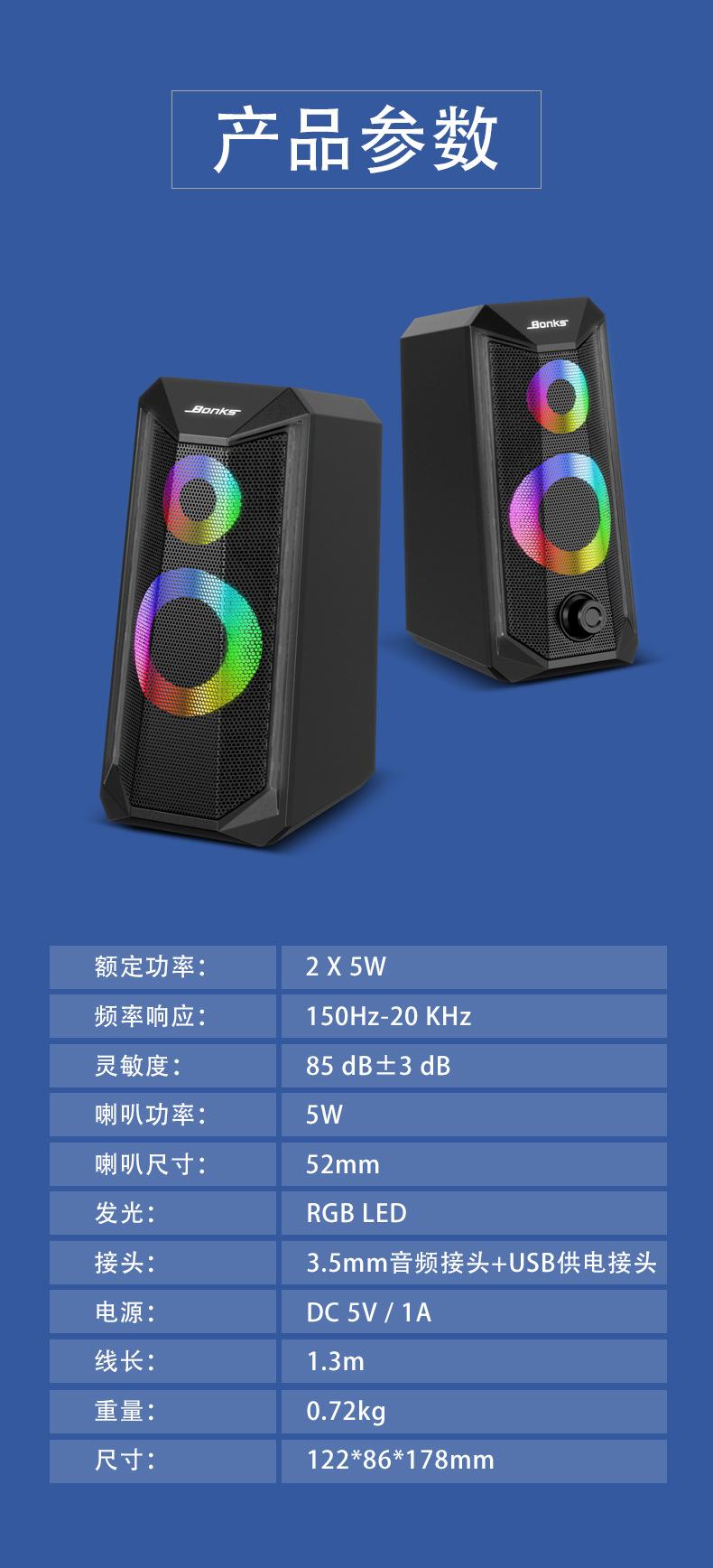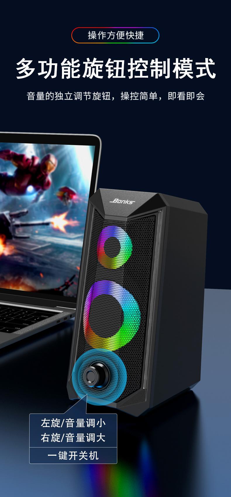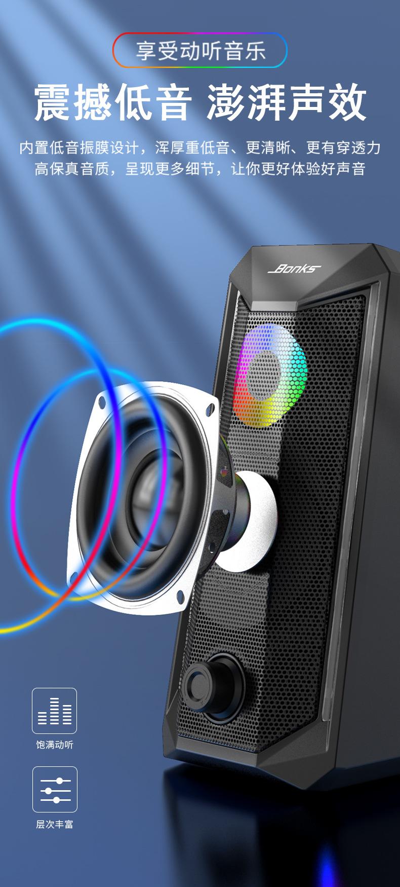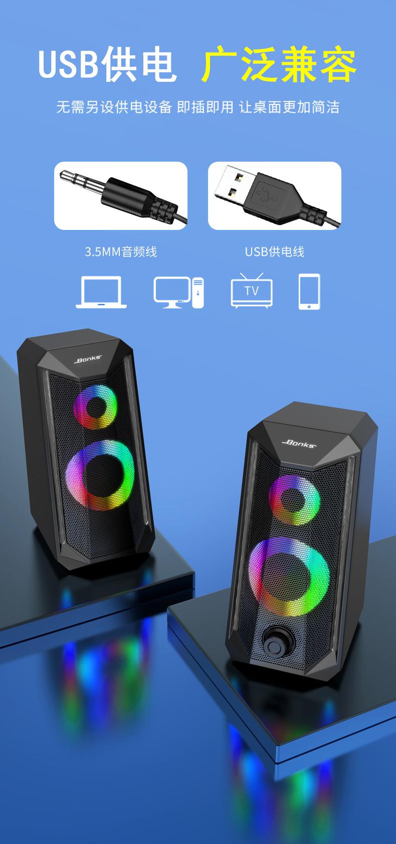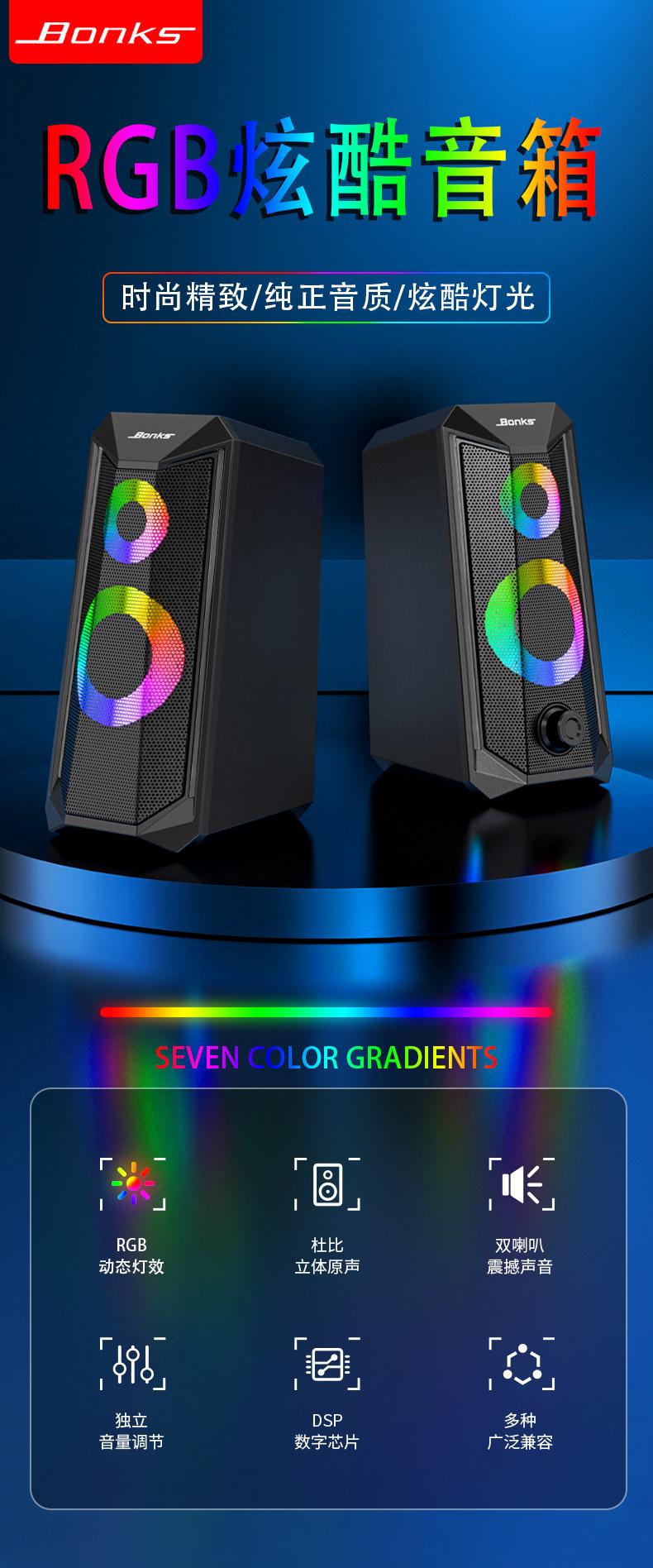 Rgb Luminoso Audio de Computadora Escritorio Portátil Escritorio Altavoz Pequeño USB Par Caja Multimedia Venta Caliente Transfronteriza