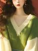 2024 Ropa de Mujer Europea y Americana Amazon Otoño e Invierno Nuevo Color Puro Cuello V Recorte Suelto Prendas de Punto
