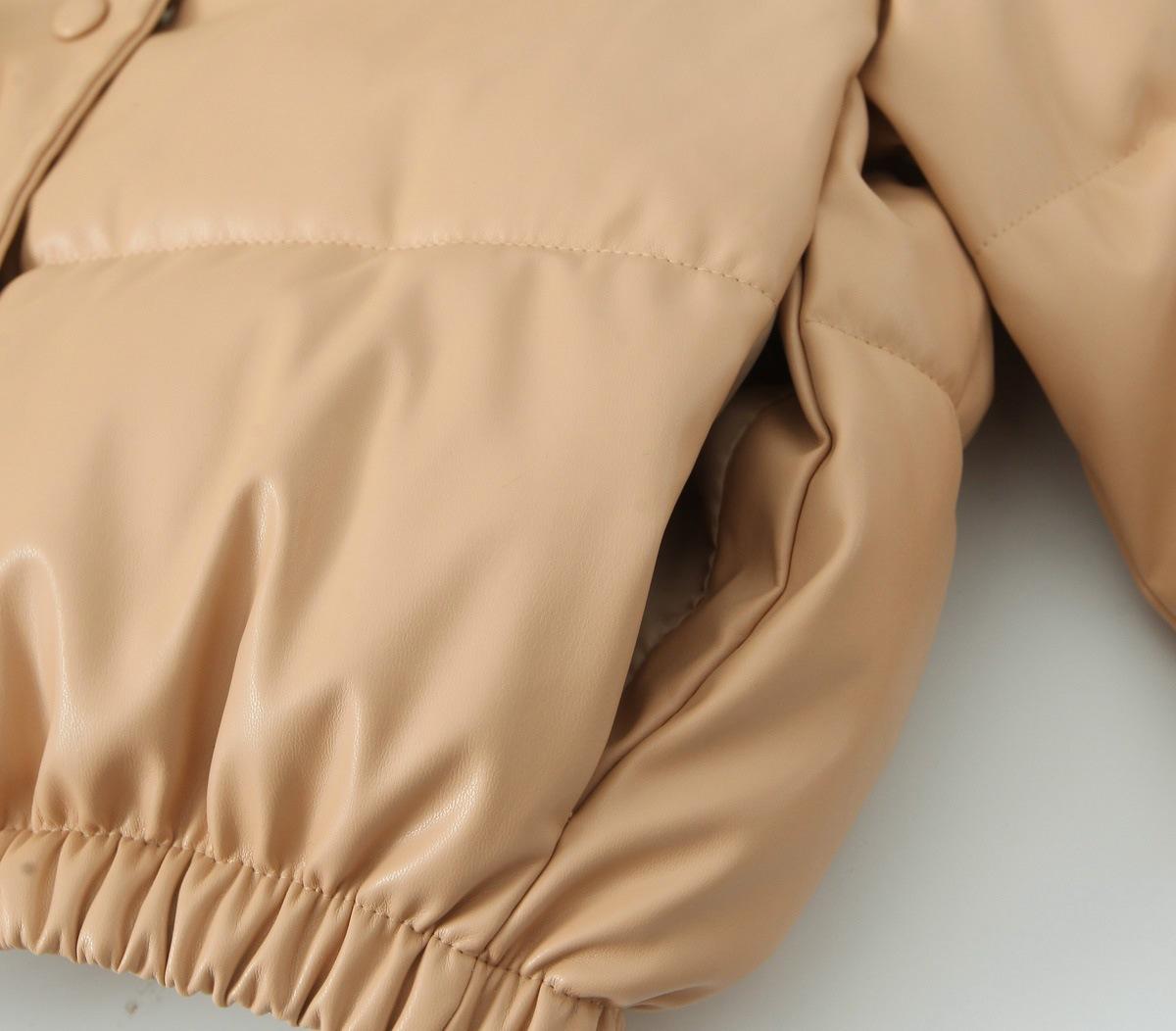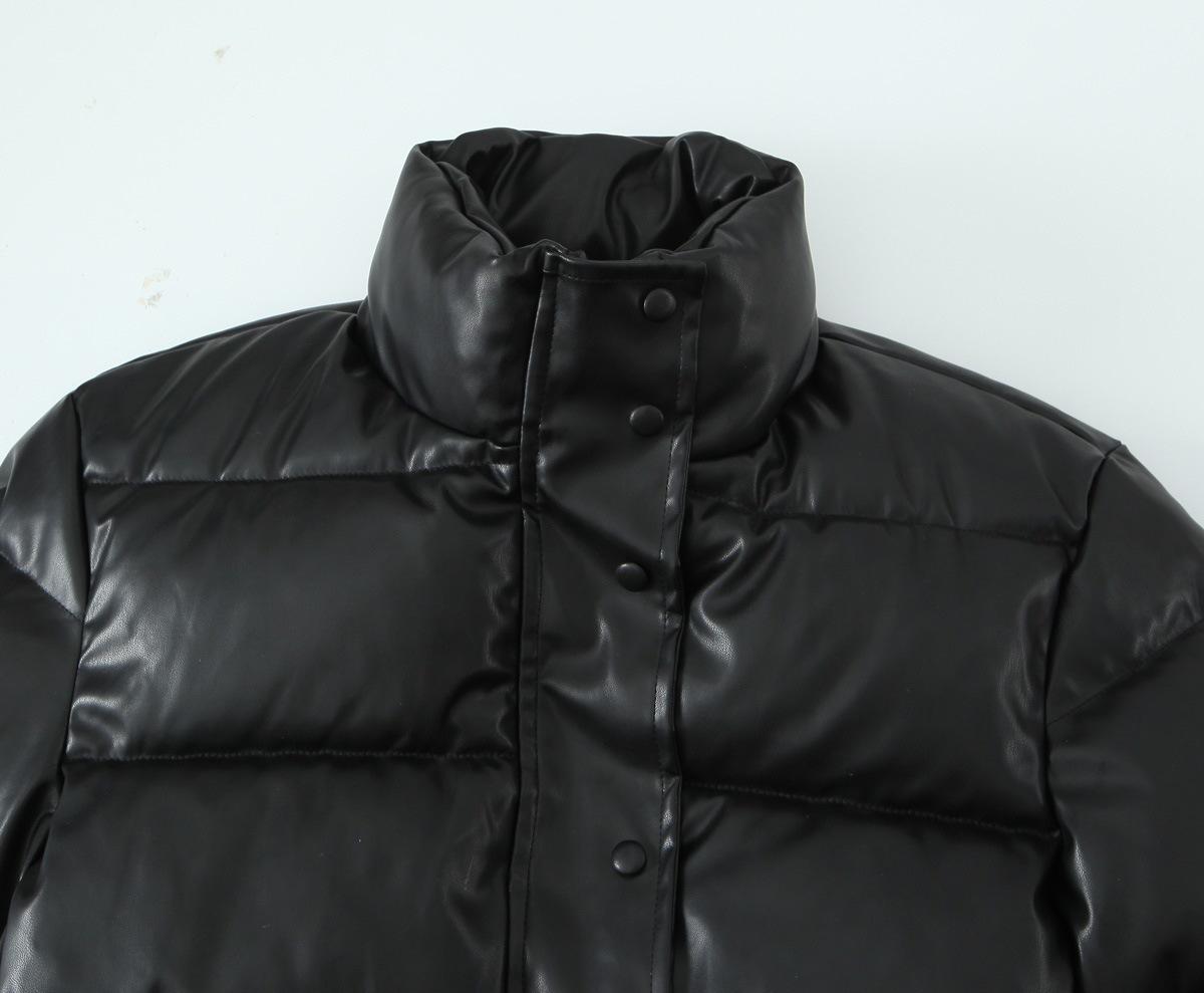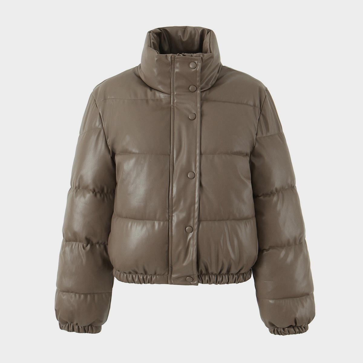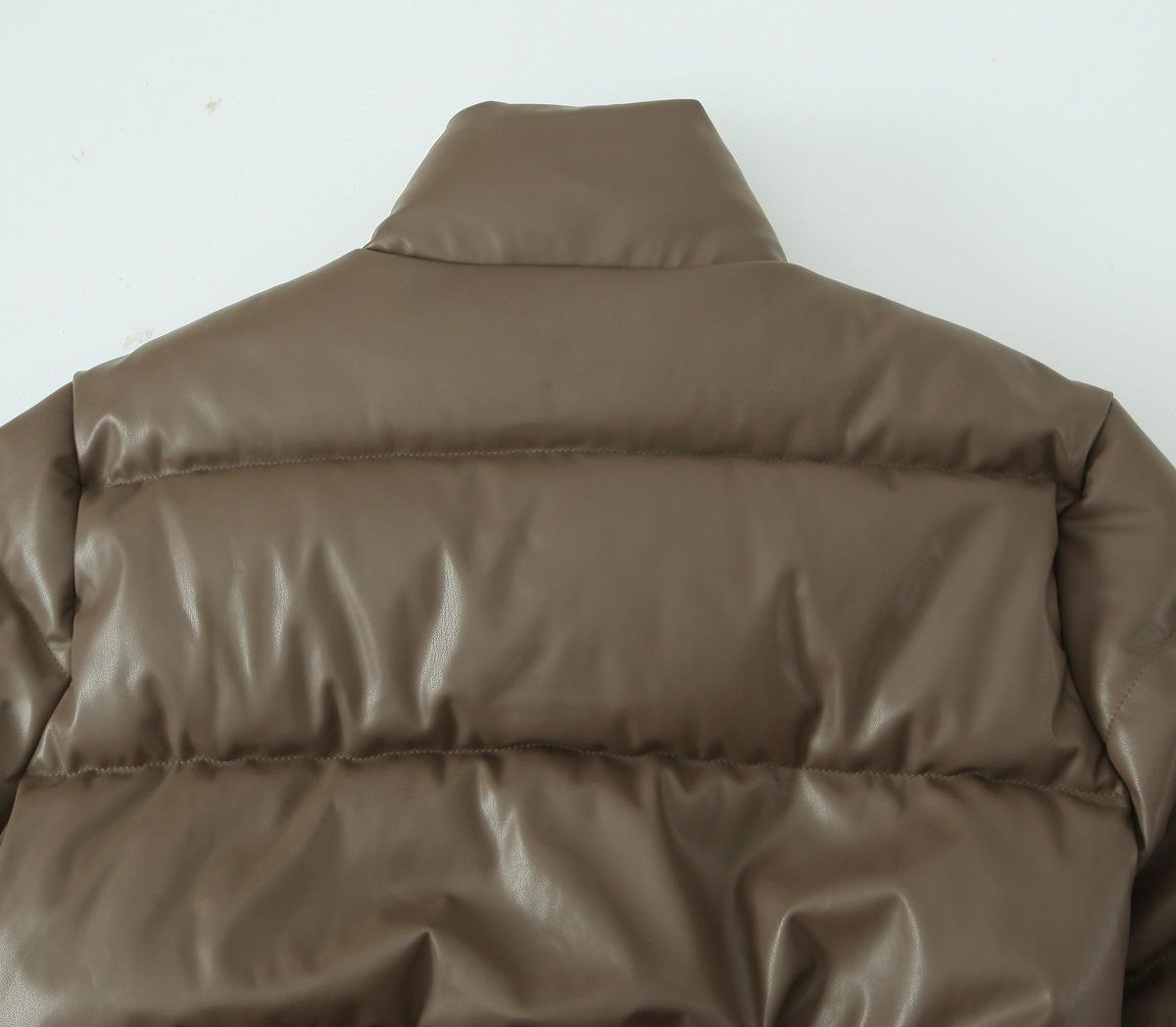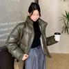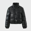 Abrigo de algodón de cuero sintético estilo europeo y americano para mujer, abrigo corto de algodón con cuello vertical, abrigo informal de estilo locomotora para chica.